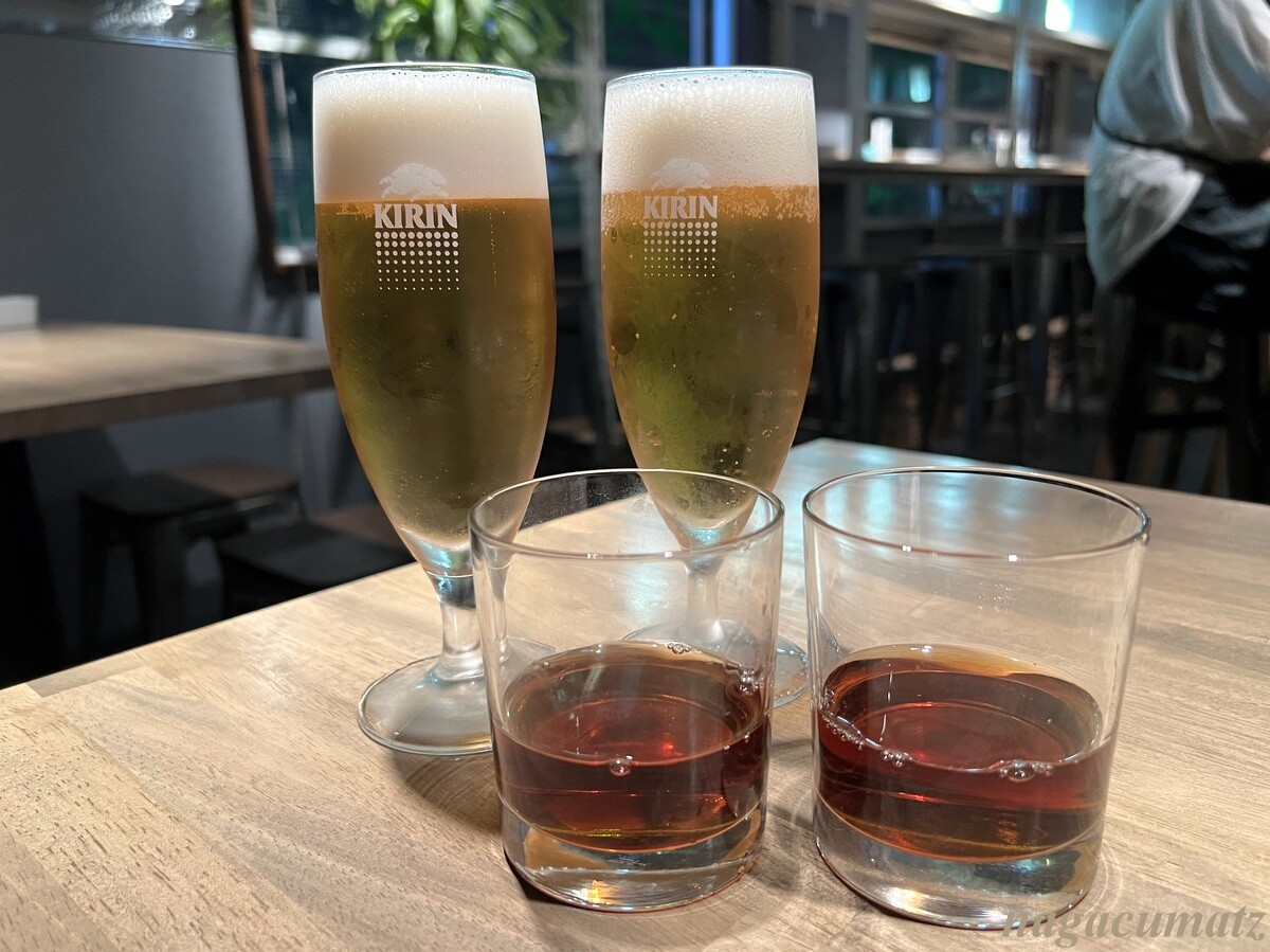 お疲れ様点心セット 980円 ビール一杯が付いている。それに紹興酒5年 580円。