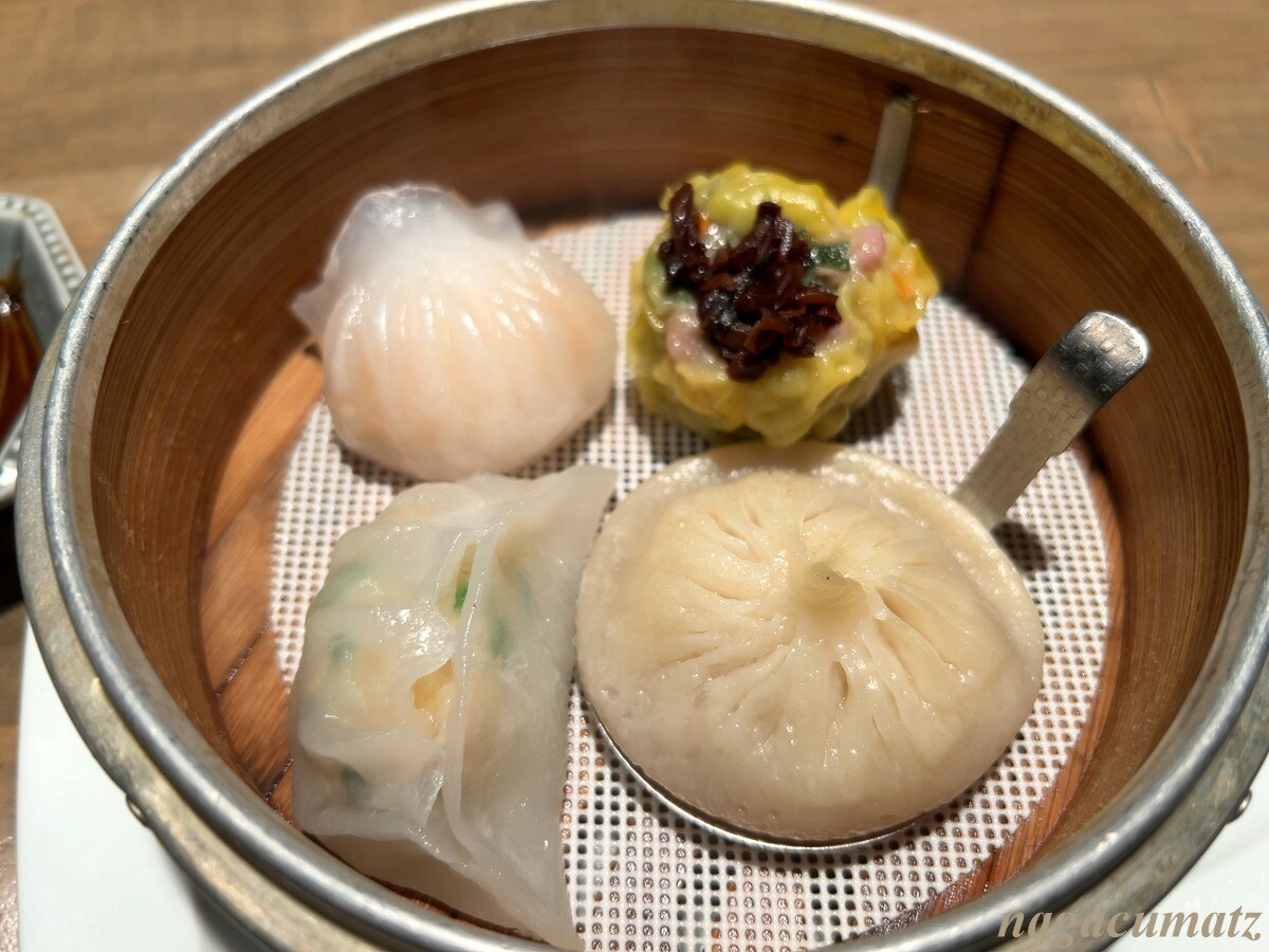 小籠包、海老ぎょうざ、ニラ海老餃子、ポルチーニ黒豚焼売の4醜類。