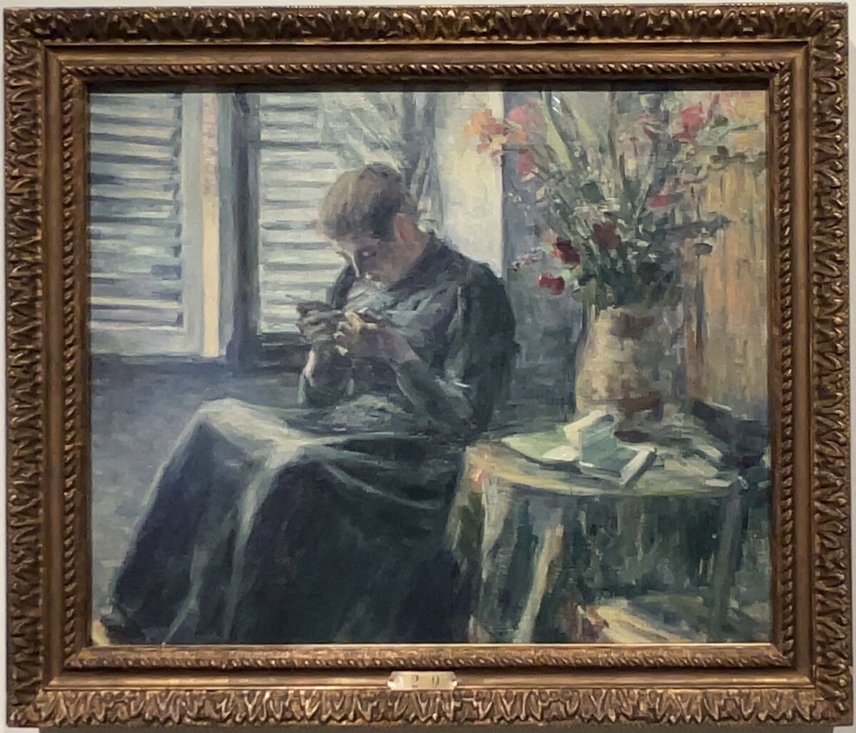 黒田清輝「編み物」1890 パリで、ラファエル・コラン氏に師事。