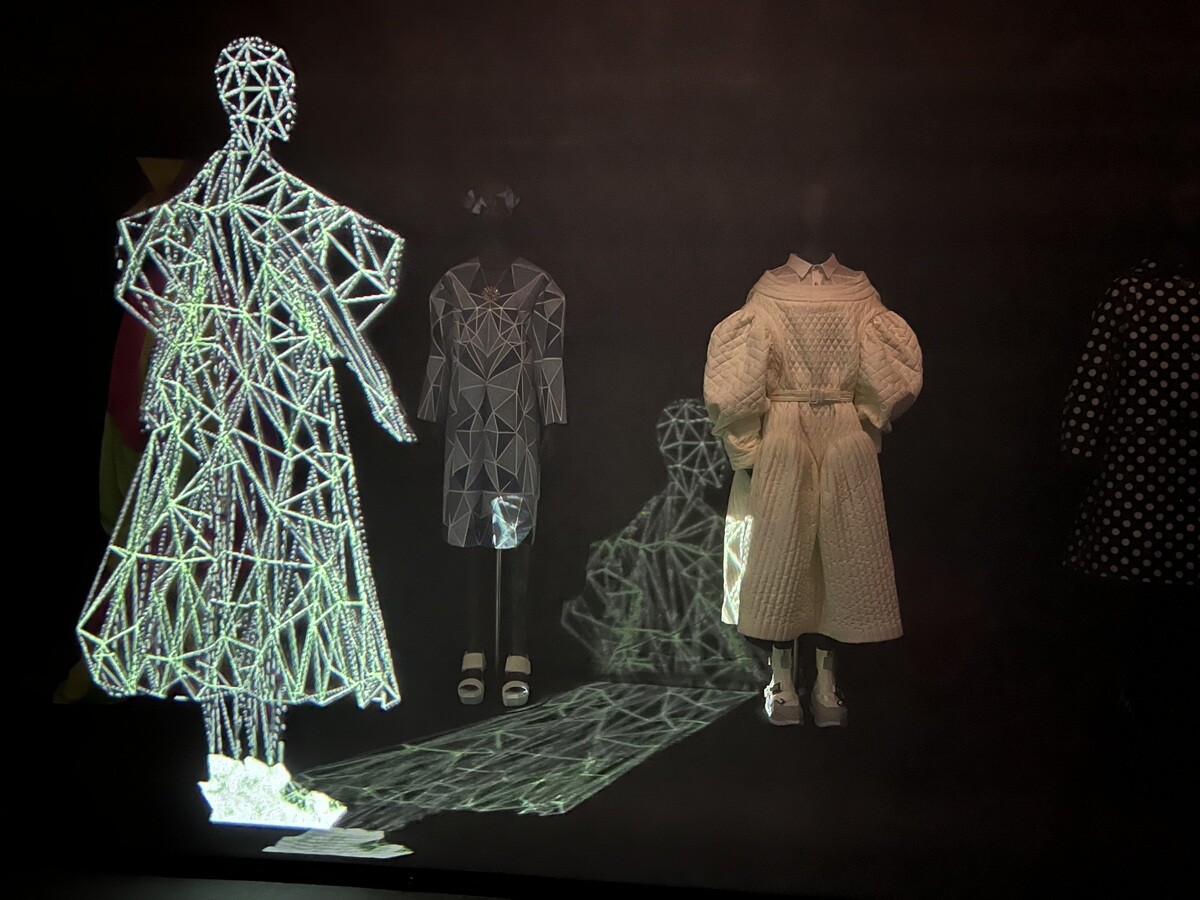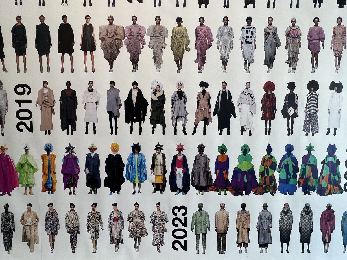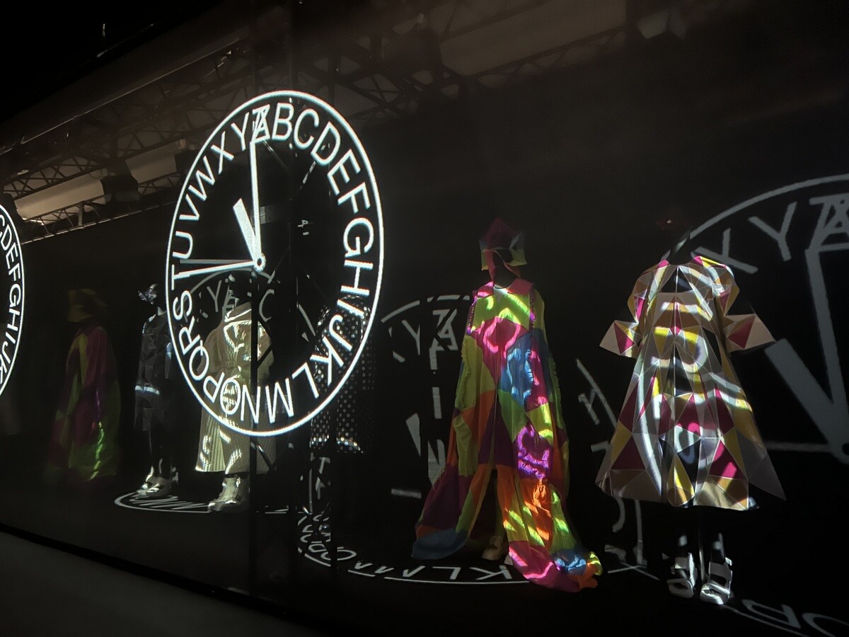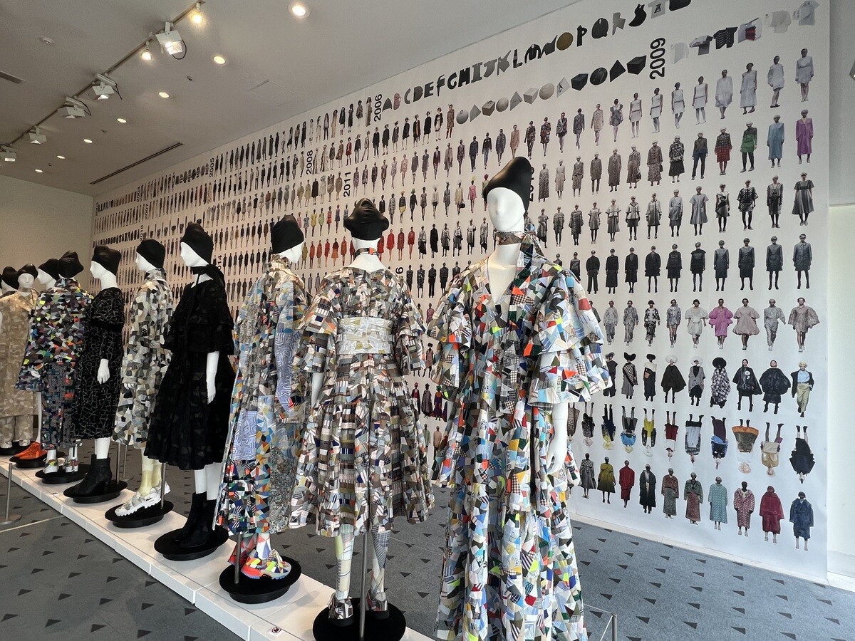 2020年~2023年の間に発表したコレクションで構成されているが、向かって左側の「WALL OF THE COLLECTION LOOKS OF 20 YEARS」は、2003~2023年のものが一同に。向かって右側は「WALL OF THE WORDS OF A=Z」