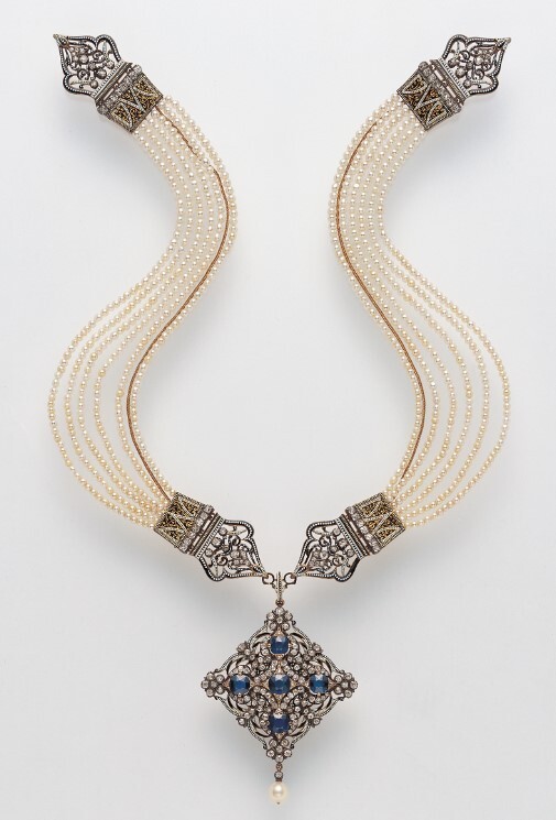「エナメル &サファイア、ダイヤモンドネックレス」イギリス、カルロ・ジュリアーノ作、 1880年頃