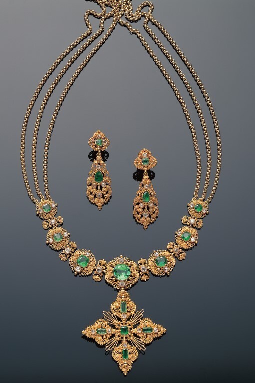 「エメラルド&ダイヤモンドゴールドセット」イギリス 、 1830年頃
