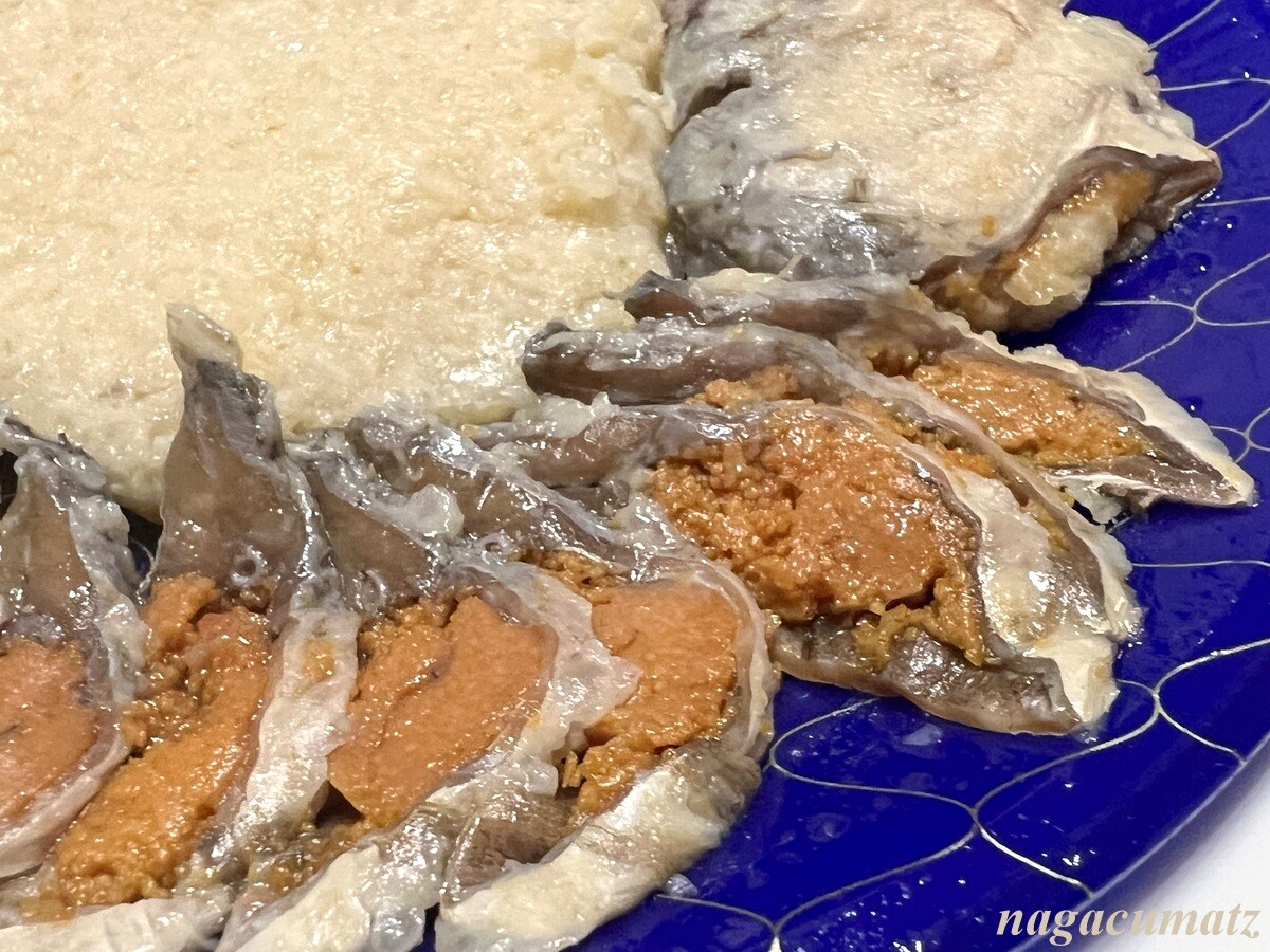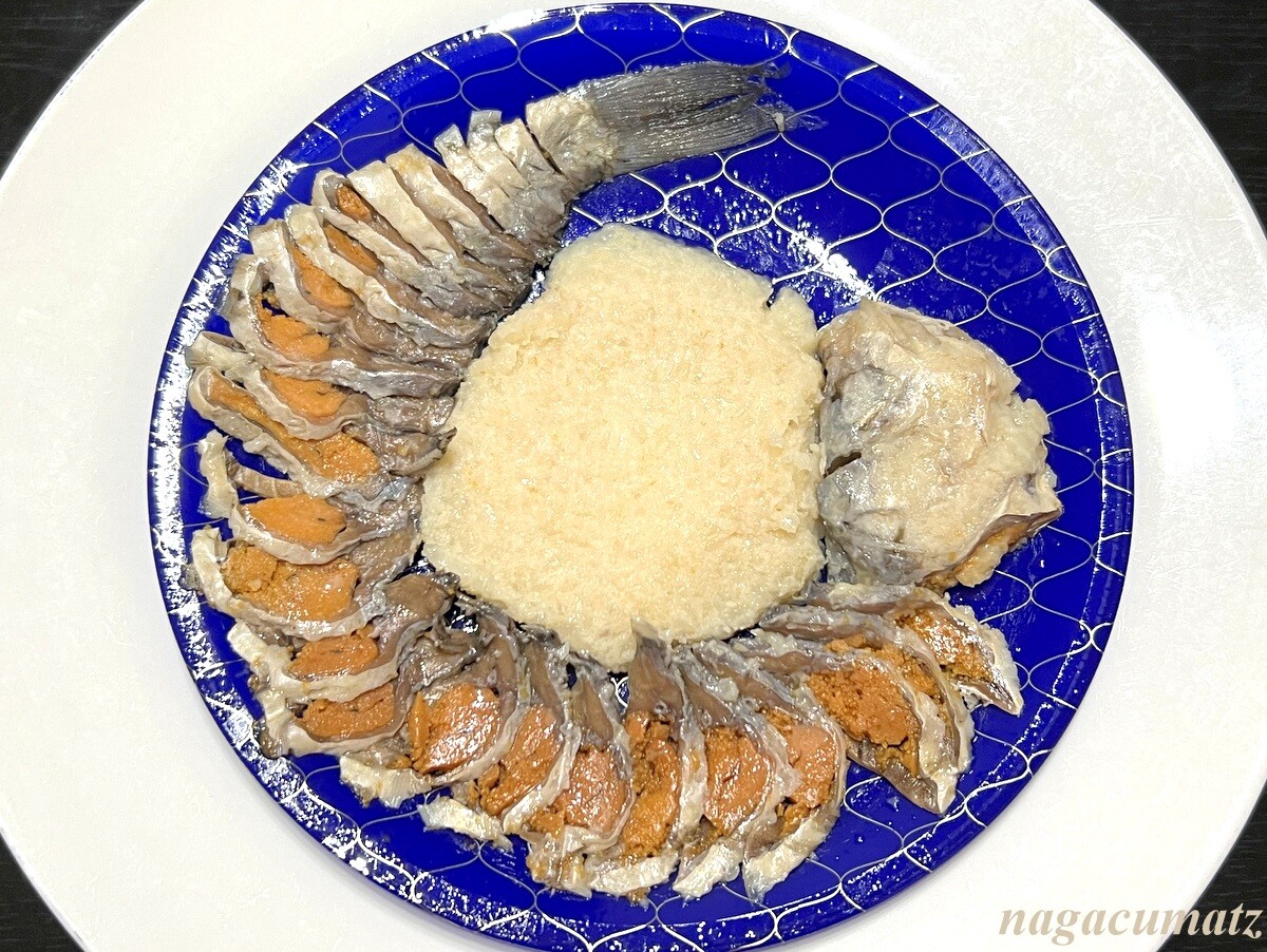 鮒寿司 3240円 切っていない一尾も同じ金額で売っておられたが、やや飯部分は少ないが切ったものをいただくことにした。やはりとても美味しい。