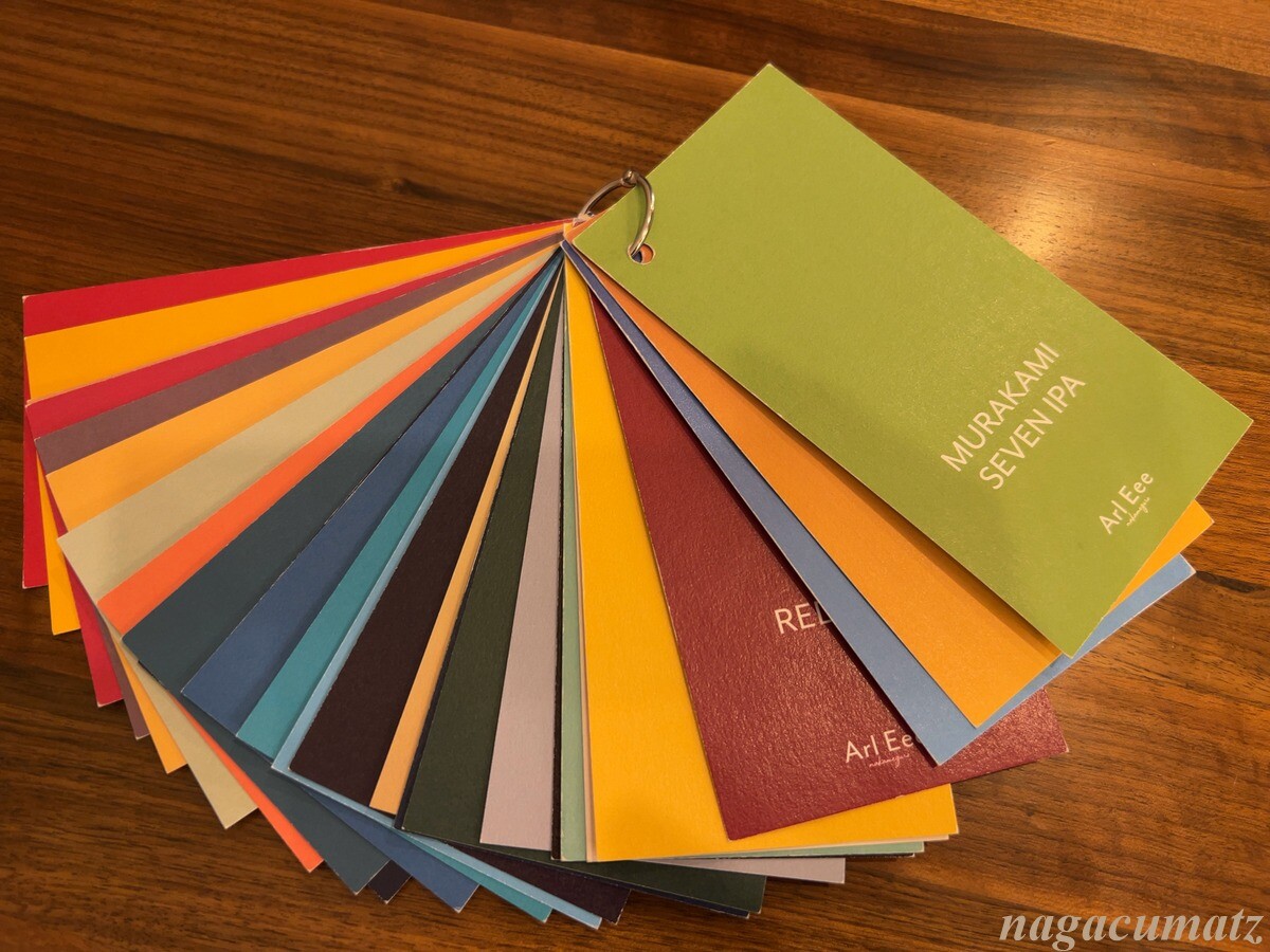 クラフトビールの色々な種類のコースターがあり、裏面に苦みなどのことが詳しく書かれている。