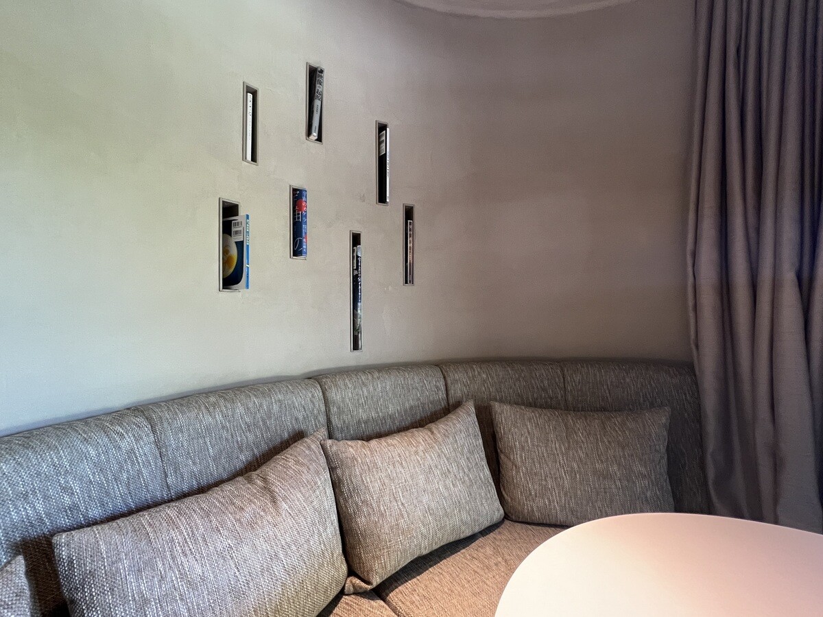 こちらの小部屋にある背後の壁に入れてある書籍を抜くと、色々な模様を楽しむことが出来る。