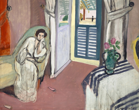 フランス当局は返還をしぶるも、日本政府の長きに渡る交渉により無事に戻った作品。現在、西洋美術館の常設展示の中心となっている作品。ドラクロワの「アルジェの女たち」(1834)を踏まえているが、実際にアルジェまで行ったドラクロワとは異なり、パリの室内で描かれている。