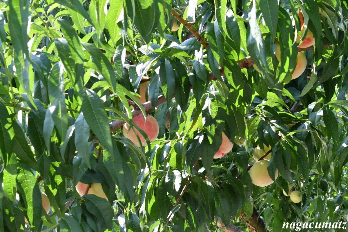 その後、笛吹や勝沼へ。いつもは桃源郷として桃の花が綺麗な時期に訪れているので、桃やブドウがなっているのを見るのは初めて。桃源郷の様子は: