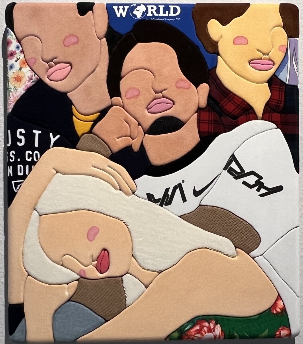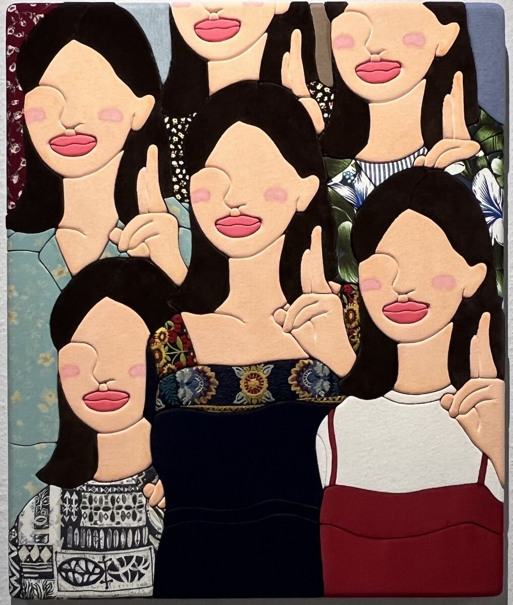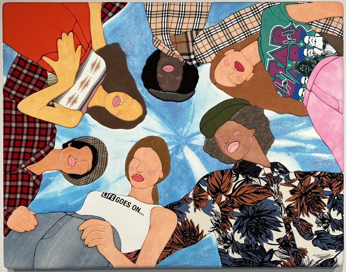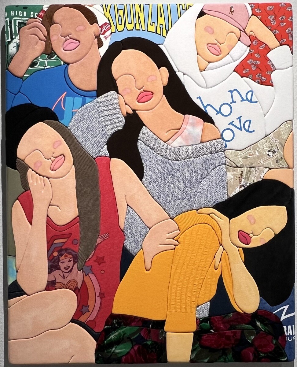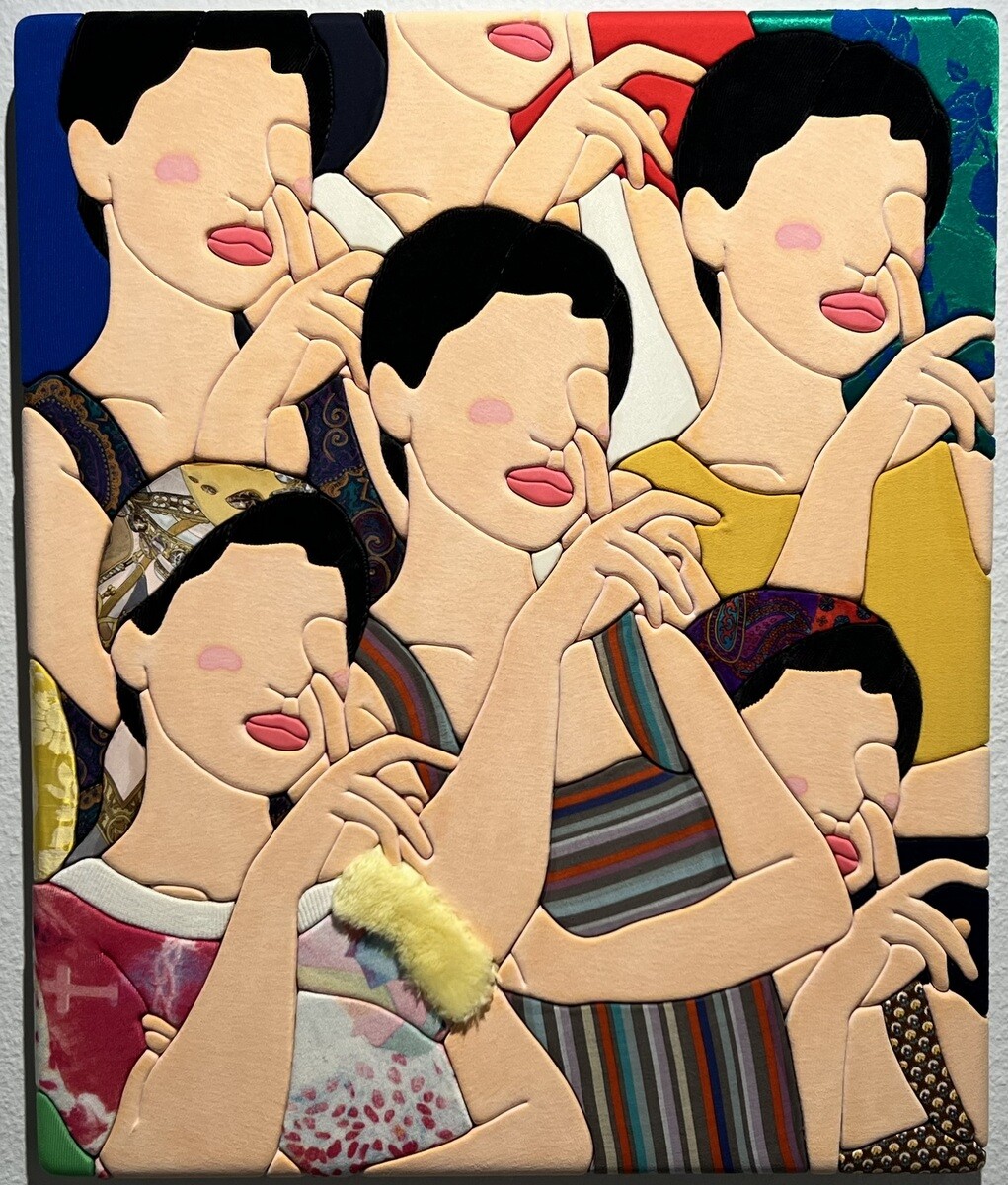 谷敷氏は、幼少期をアメリカで過ごし、帰国後服飾を学んだと言う経歴の持ち主。幼い子供の厄除けの祭具であるひな人形の制作方法として、300年前に江戸で生まれた木目込みの技法で、古着などを使って作品を作っておられる。東京オリンピックのスケートボードメダリストで、谷敷氏とも親交のある中山楓奈(ふうな)選手をモチーフにした作品を含む新作約20点。