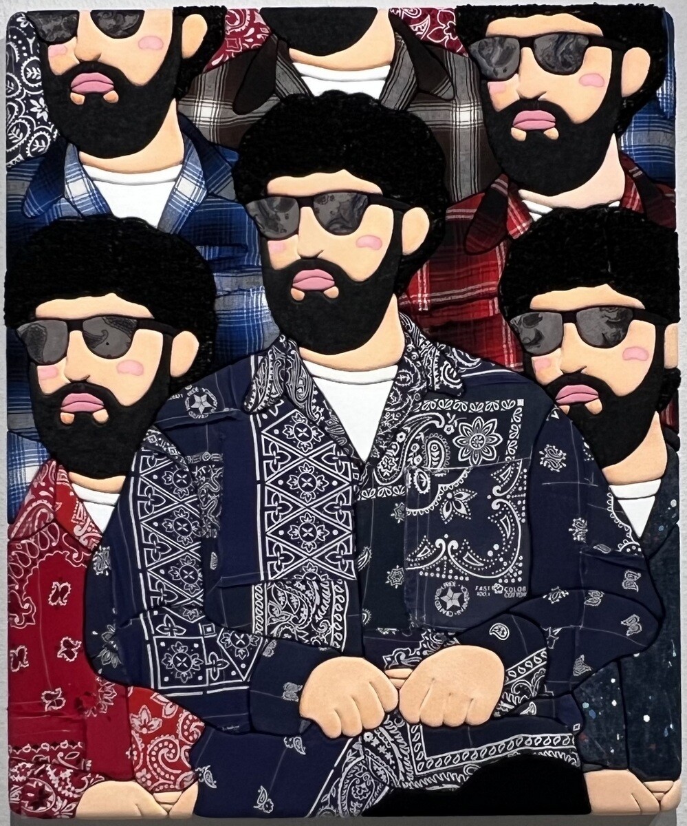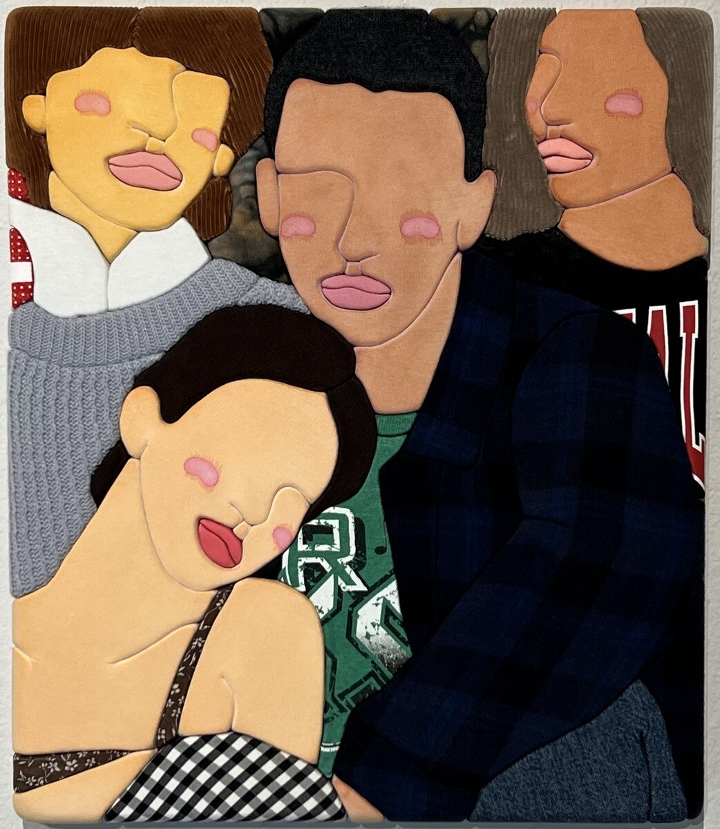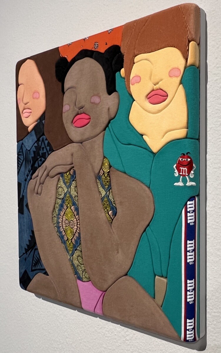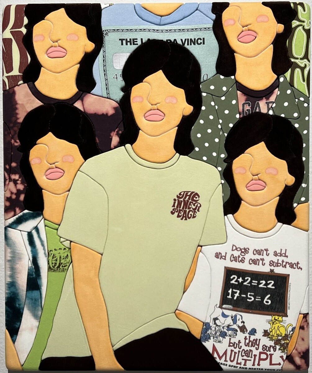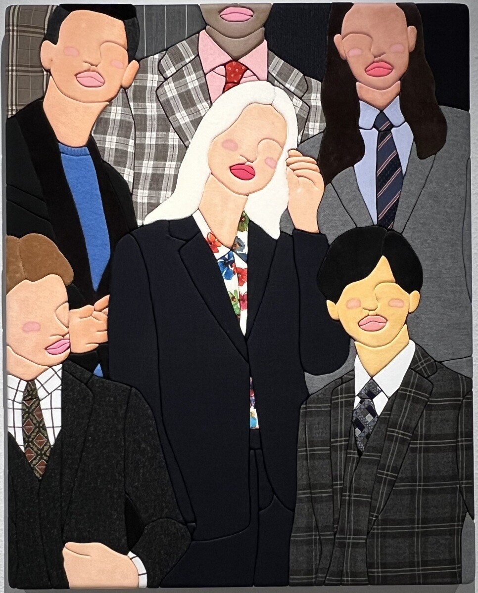 谷敷氏は、幼少期をアメリカで過ごし、帰国後服飾を学んだと言う経歴の持ち主。幼い子供の厄除けの祭具であるひな人形の制作方法として、300年前に江戸で生まれた木目込みの技法で、古着などを使って作品を作っておられる。東京オリンピックのスケートボードメダリストで、谷敷氏とも親交のある中山楓奈(ふうな)選手をモチーフにした作品を含む新作約20点。