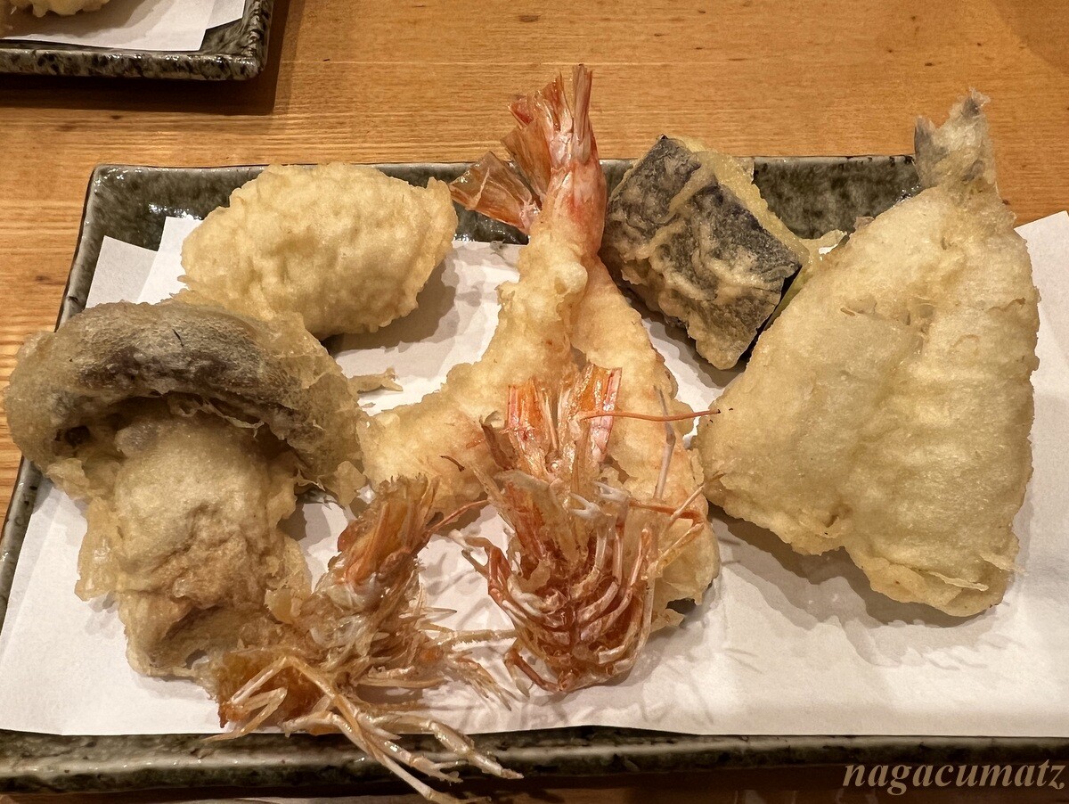 海老2尾、キス、茄子、鱧、しめじ