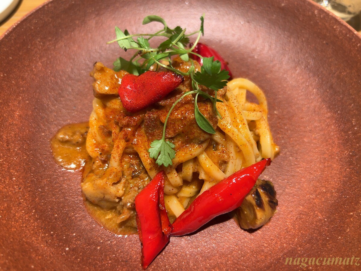 パスタ2品目は、キタッラ、イベリコ豚、パプリカ、万願寺唐辛子