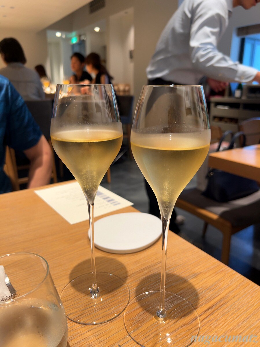 まずはシャンパンを。シャルドネ100%のブランデブランを。2200円 結構酸味のあるタイプ。