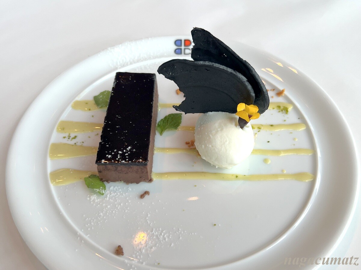 チョコレートのババロアと牛乳のアイスクリーム ミント風味のアングレーズソース