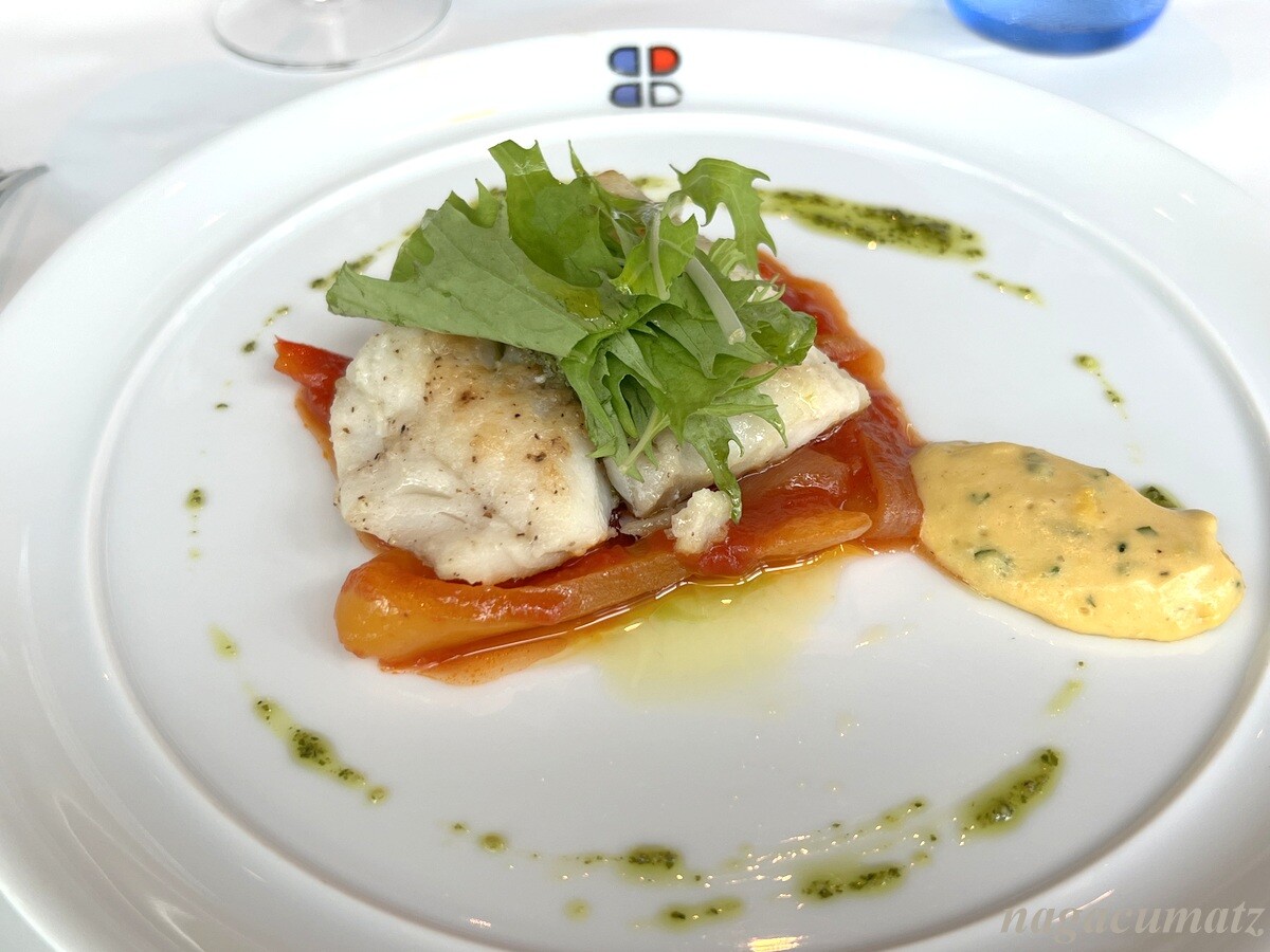 夏ダラのポワレ ピペラード添え ベアルネーズソースとバジルのソース