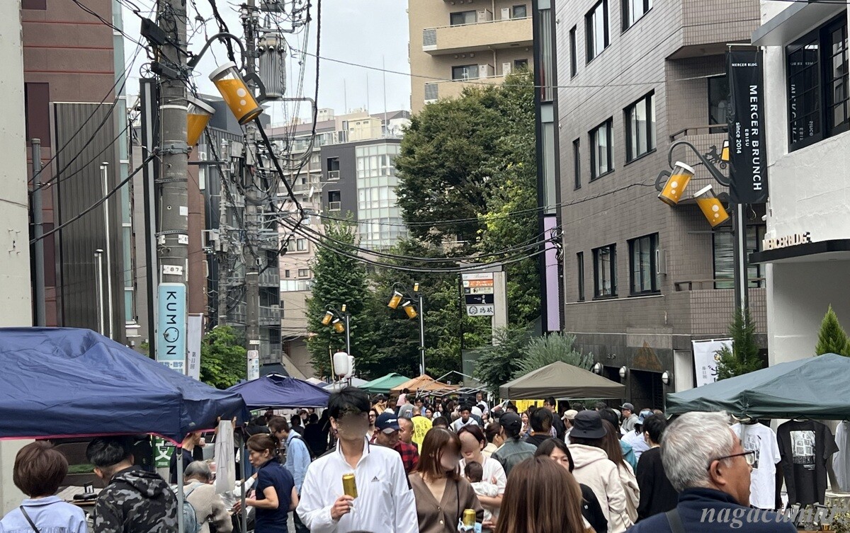 「恵比寿ビール坂祭り」は、2010年から始まり、今年で第11回となるが3年振り。驚いたことに、もともとは、「となりのさんま祭り」という自虐的な?名称で、商店会加盟店10店舗程度だったが、今は40店舗が出店しているのだそう。