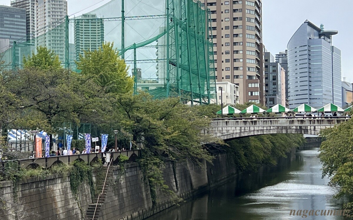目黒川沿いは、会場から相当離れていても、さんまを焼く匂いがプンプンしていた😂