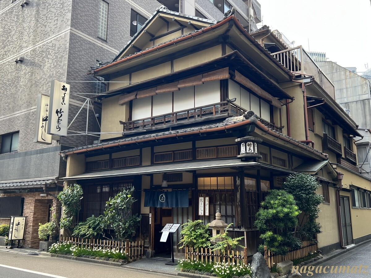 入母屋造りで木造3階建てだが、外観では屋根と庇で4層にも見える。2階の欄干には職人の手による竹と梅模様が彫られ、軒下に木製の提灯が下げられており、東京都選定歴史的建造物に指定されている。