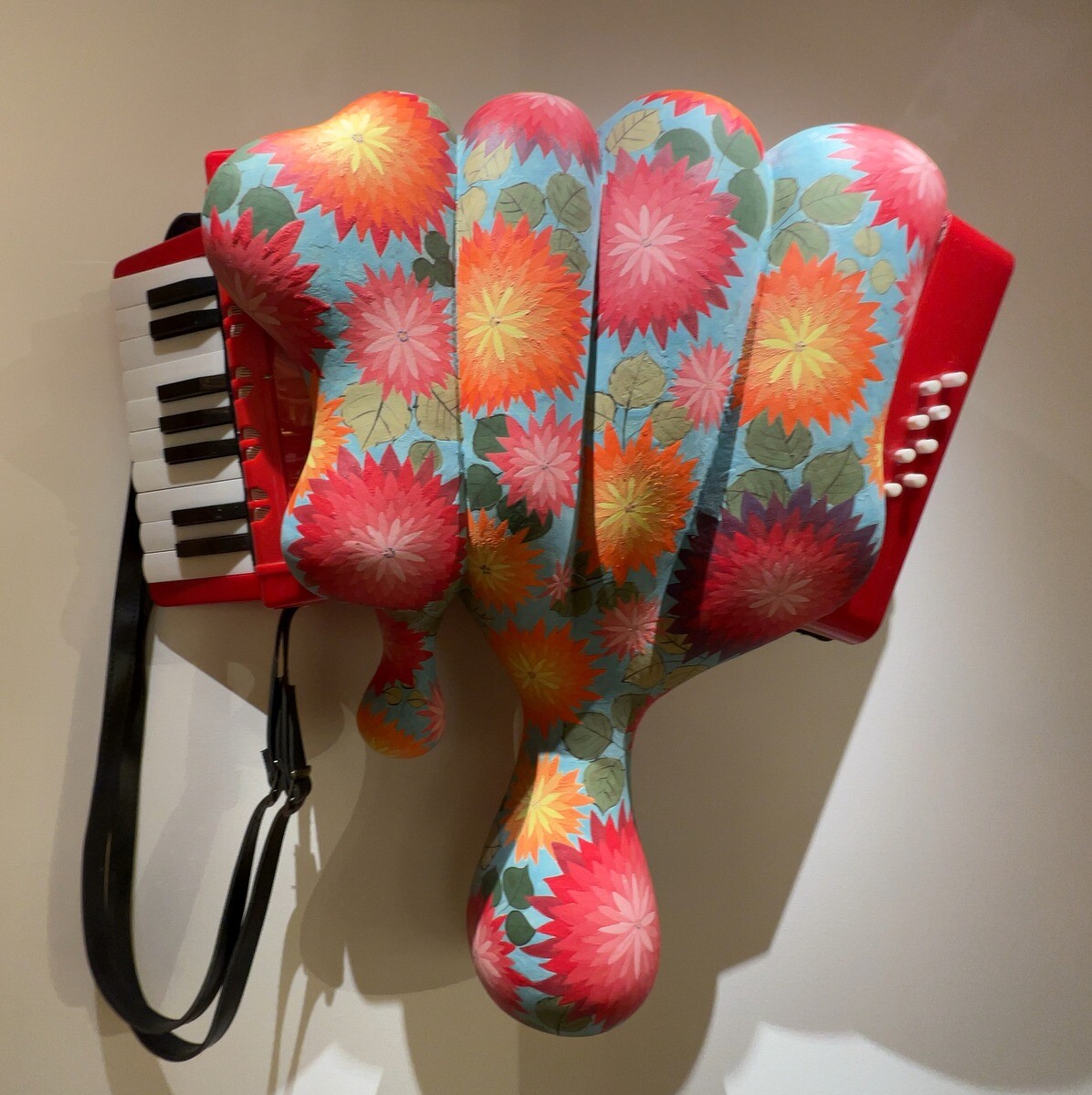オーストリアでよく見かけるというアコーディオンの形状にインスパイアされて制作した「とある楽器」