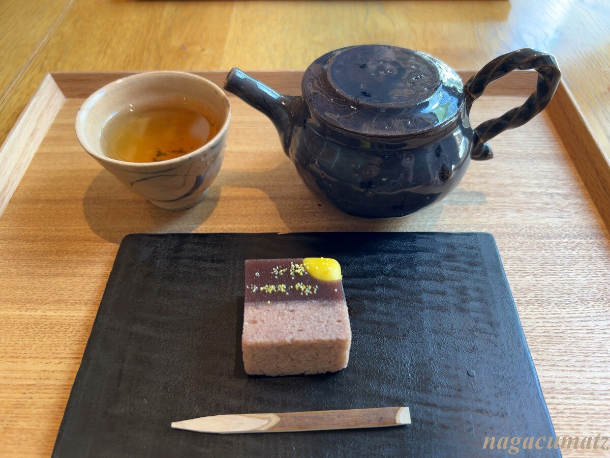 金工作家の竹俣勇壱氏が選定・制作した茶道具や、杉田明彦氏や中田雄一氏らの茶器など、地元作家のテーブルウェアを使い、メニューは金沢の人気カフェ「HUM & Go#」が監修しているとのこと。