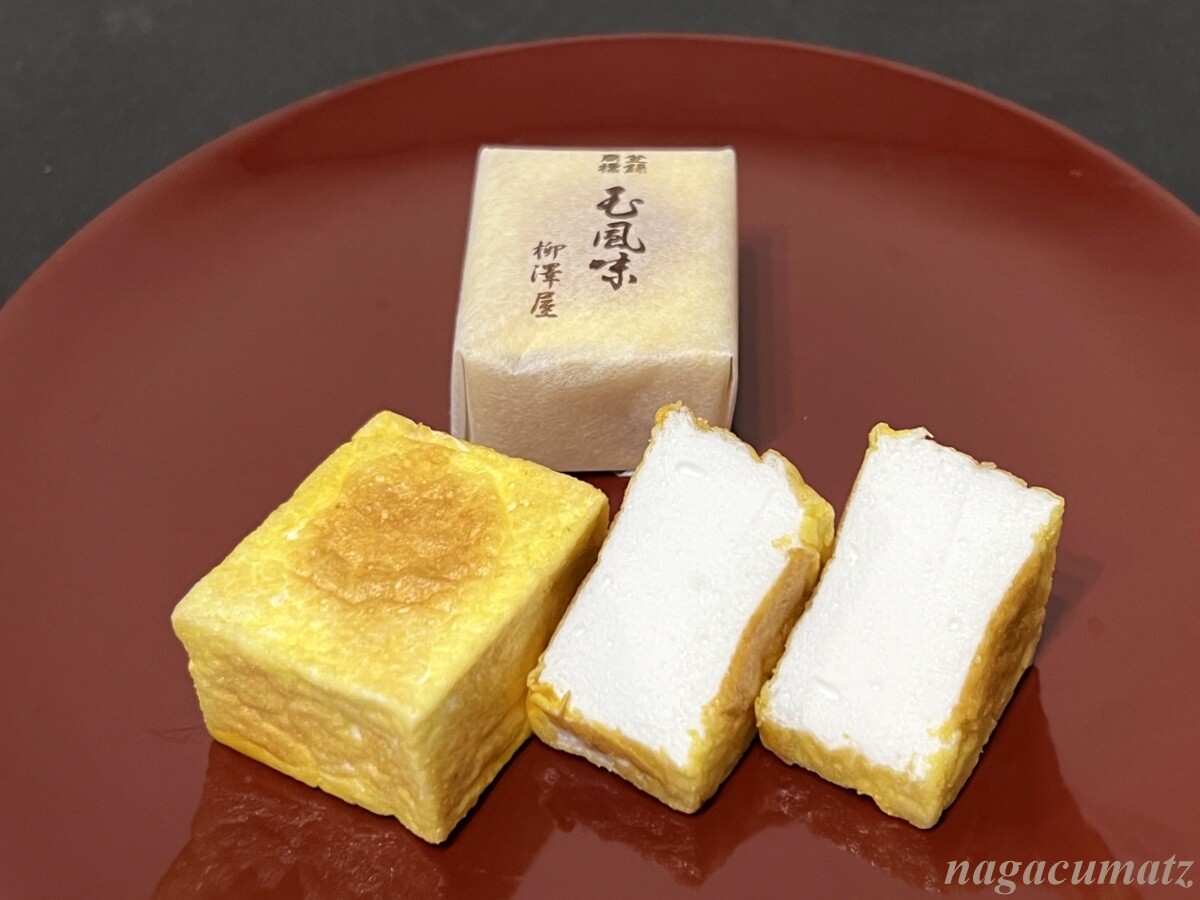 柳澤屋の「玉風味」は、大正初期に柳澤作蔵氏により創案。卵白、砂糖、寒天、卵黄のみ。