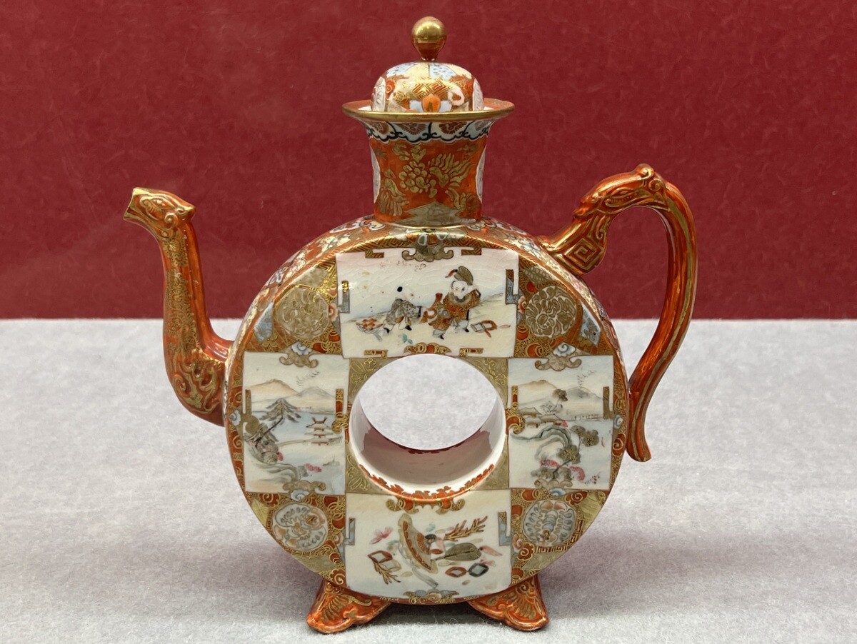 九谷綿谷製 明治時代前期~中期「色絵金彩扁壺水注」