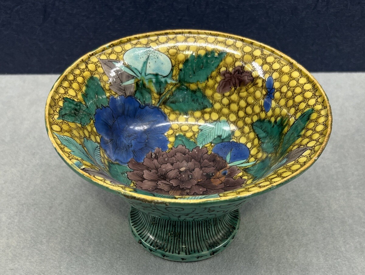若杉釜 江戸時代後期「青手牡丹図台鉢」