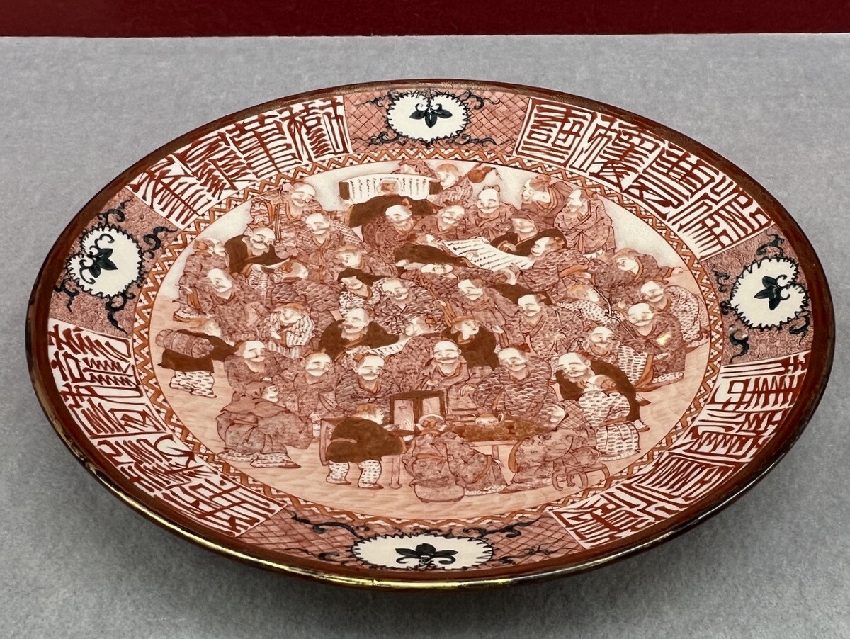 九谷庄三 明治時代初期「龍花卉文農耕図盤」