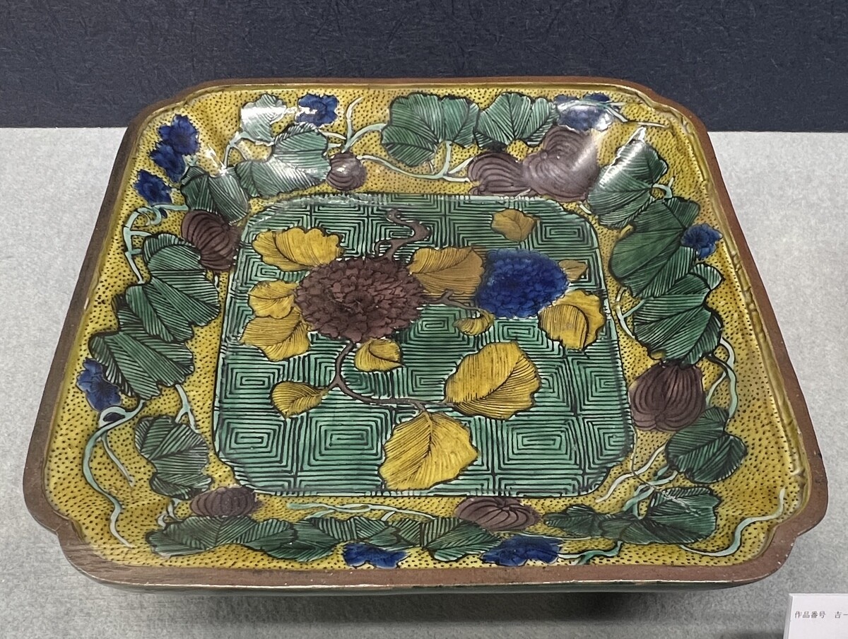 紺青の間 青手様式の色絵九谷を中心に展示。古九谷に始まり、吉田屋窯、若杉窯、蓮代寺窯、松山窯などの江戸後期から明治にかけての名品が並ぶ。