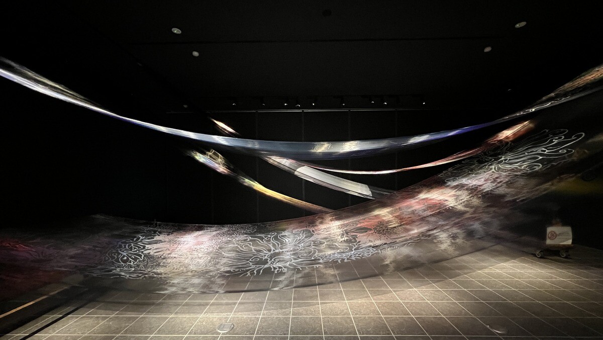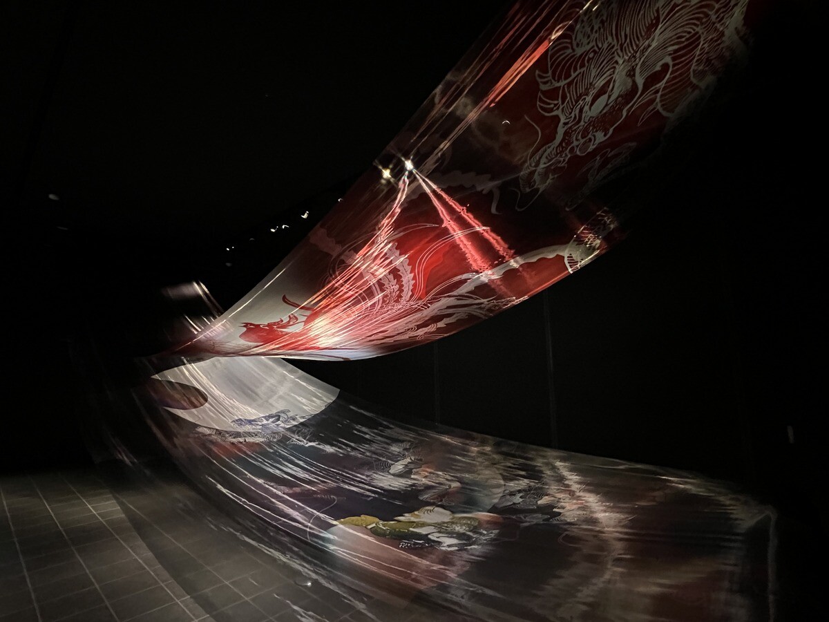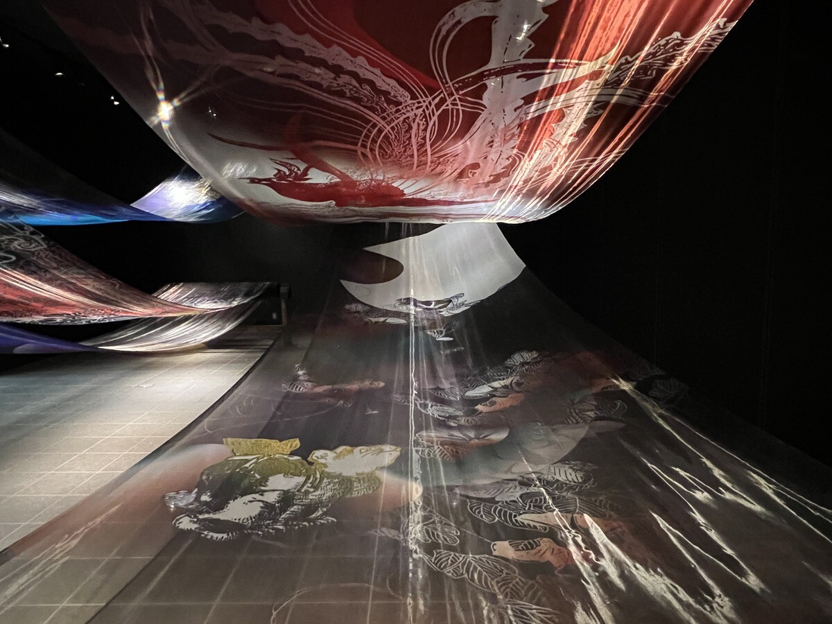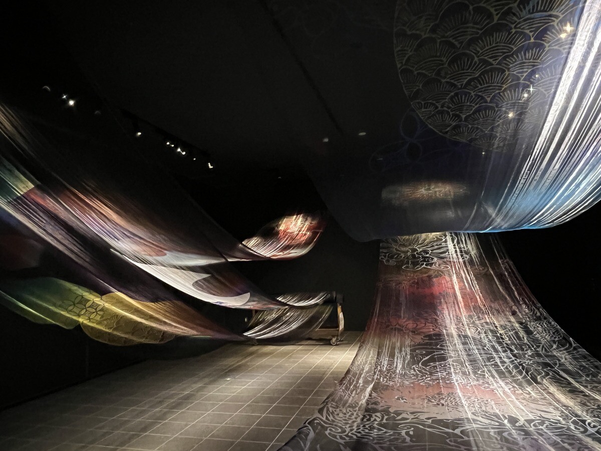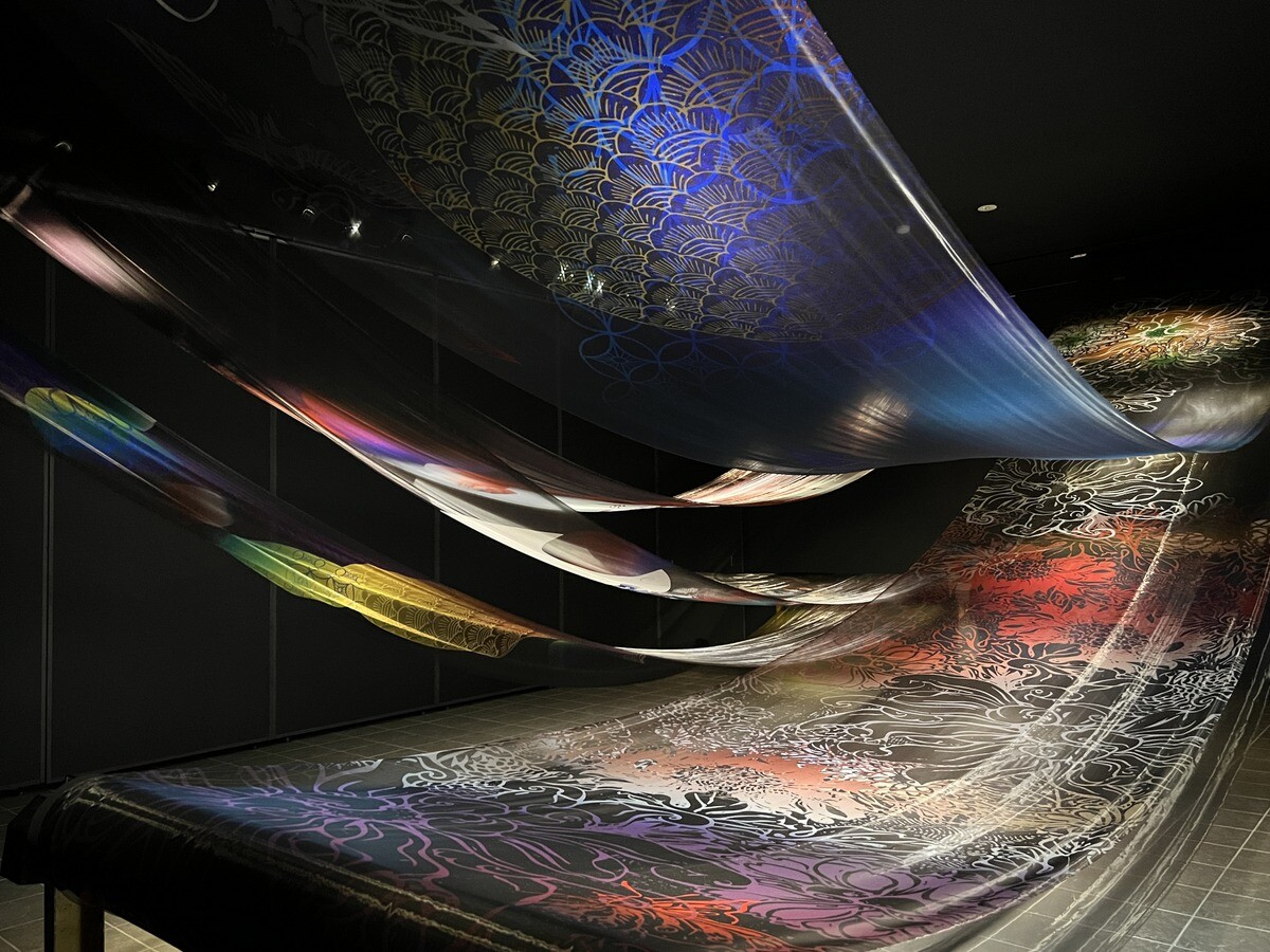 九谷焼の絵模様を体感できる空間として、能美市のファブリックメーカーである小松マテーレが「九谷焼柄の布の空間」を制作。