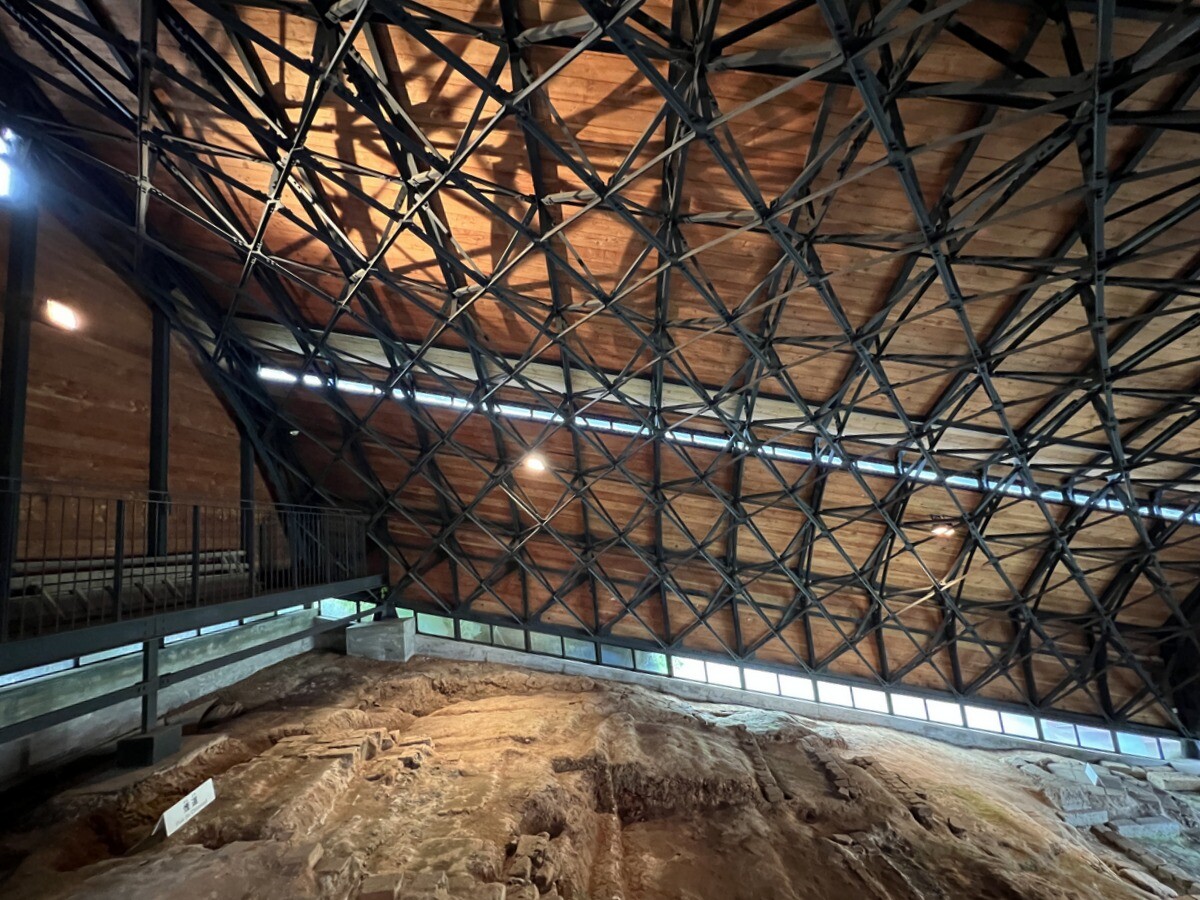 2023年11月20日 建物探訪 内藤廣 @ 九谷焼窯跡覆屋 遺跡全体を覆う鉄骨一体トランスシェルの構造で建てられている。外観は切妻造り妻入りで、かつてあった窯小屋の雰囲気を再現しつつ、冬の積雪にも耐えられるようになっている。高低差約4.5メートルの荷重を支えつつ、遺跡に影響を及ぼさないように周囲4ヶ所に杭を打ち込み、その支点に架構全体の荷重を伝える造りとのこと。にほんブログ村にほんブログ村 「アート鑑賞」カテゴリの最新記事 < 前の記事次の記事 > コメント コメントフォーム 名前 コメント 記事の評価 リセット リセット 顔 星 情報を記憶 コメントを投稿する