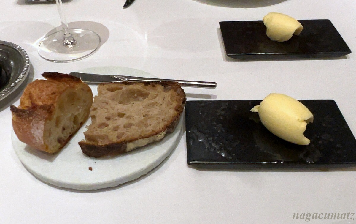 パンは、もともと東日本橋にあり、10月からは虎ノ門ヒルズにもオープンした BEAVER BREAD のもの2種類。高良シェフと、銀座レカンで同僚だった方がされているベーカリーとのこと。