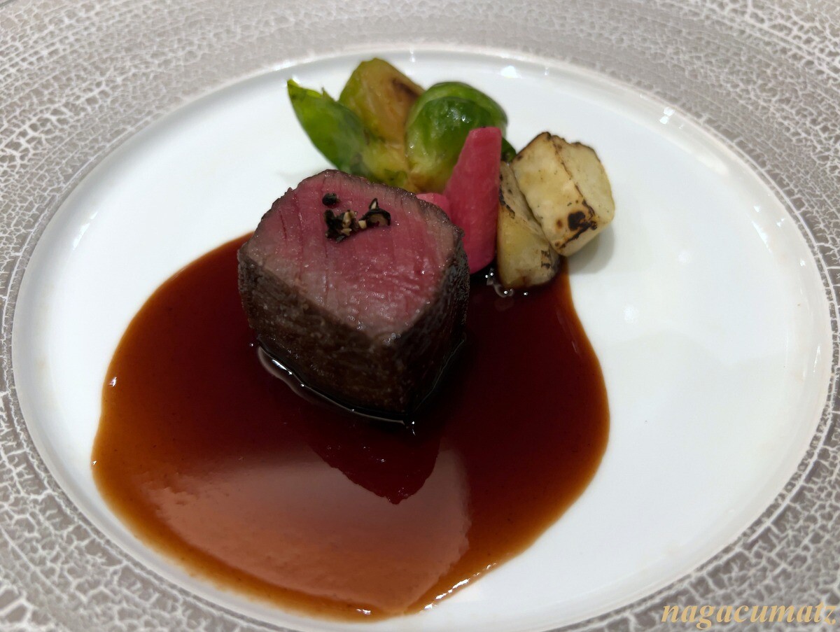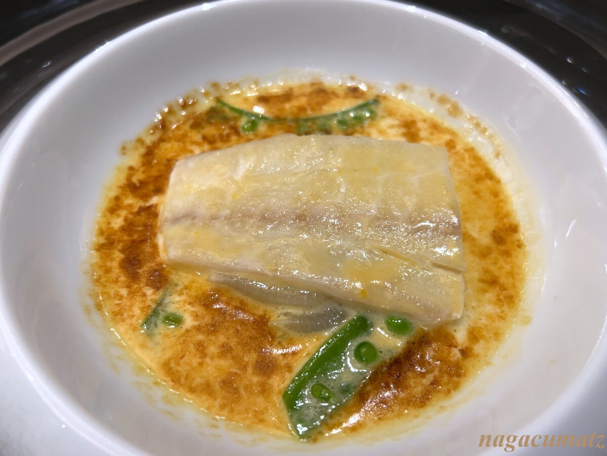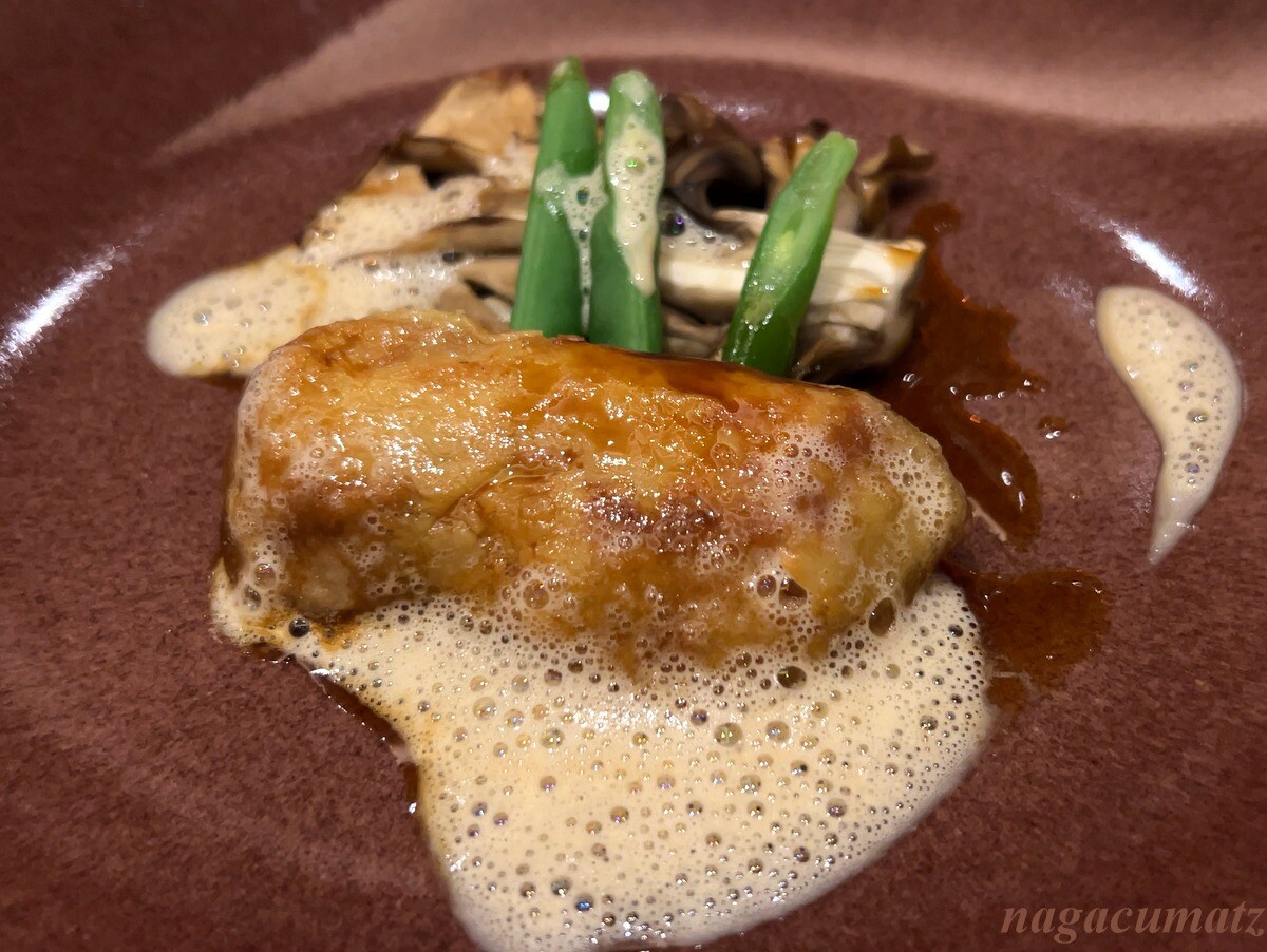 フォアグラは、マデラ酒とマッシュルームのソース。フォアグラには、薄く小麦粉をまぶしてミルクに漬けてから焼いてあるとのことで、カリッとした外側の食感が良い。それならもう少し中の火入れを少なめにして頂いても良いかも?だったが。