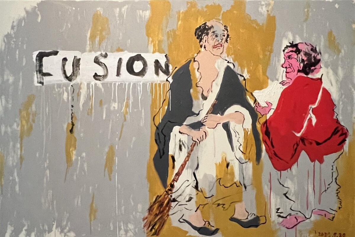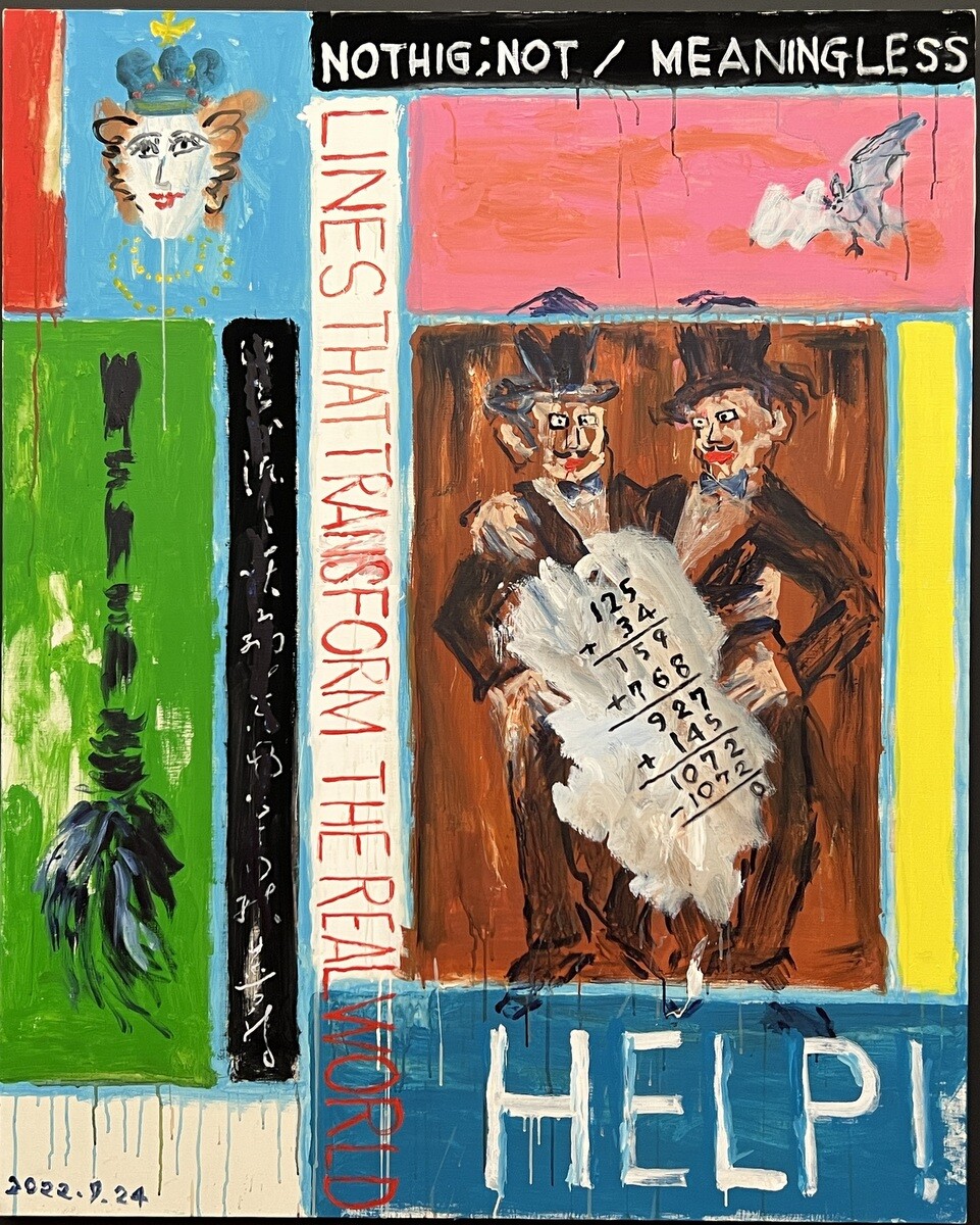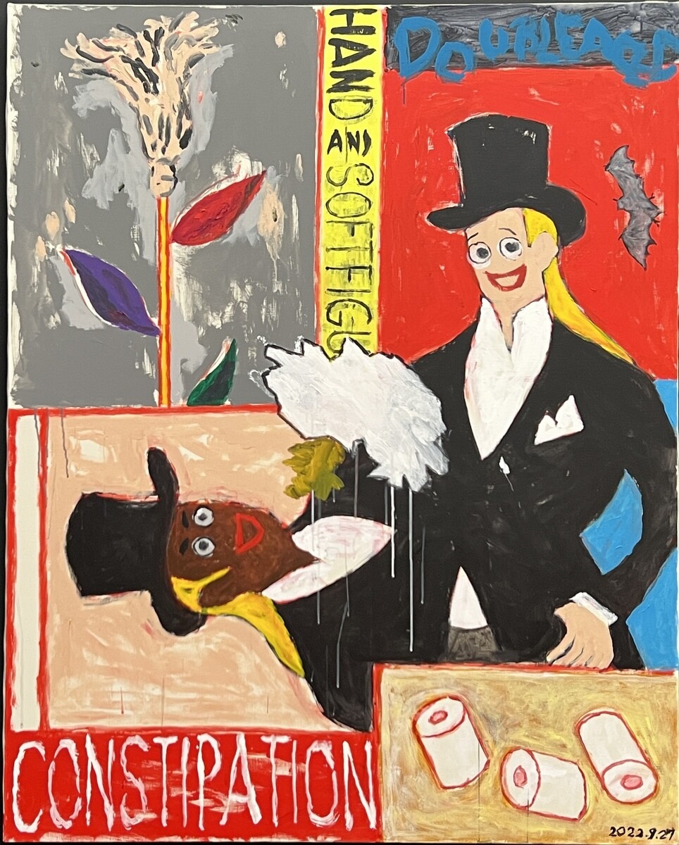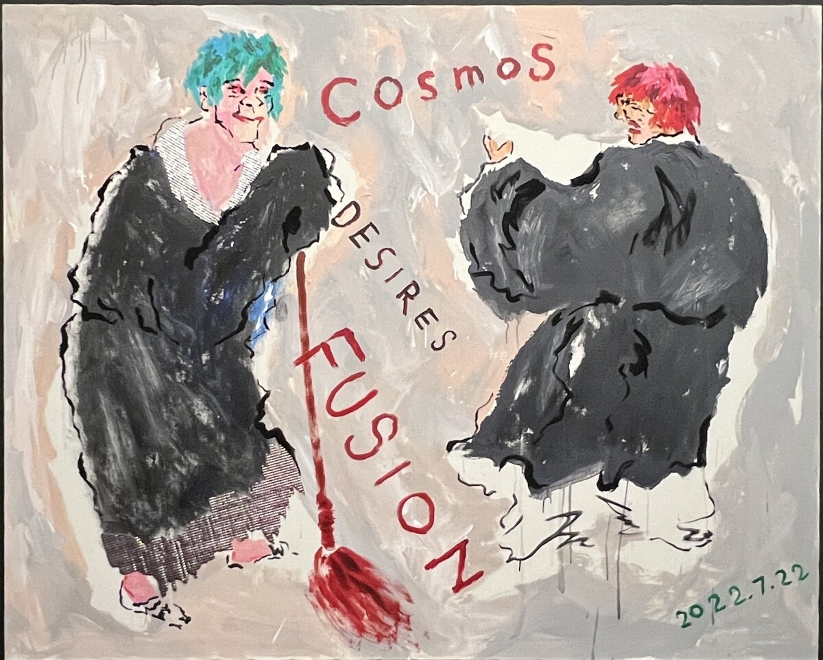 2020年に初めて描いた「寒山拾得2020」を原画としている。左側には拾得が掃除機を高く掲げ、右側の寒山は巻物を持っているが、それが徐々にトイレットペーパーに変わっている。仁王像のような構図となっている。江戸時代中期の画家である曾我蕭白(そがしょうはく 1730~1781)の描いた「寒山拾得」をアレンジしたとのこと。