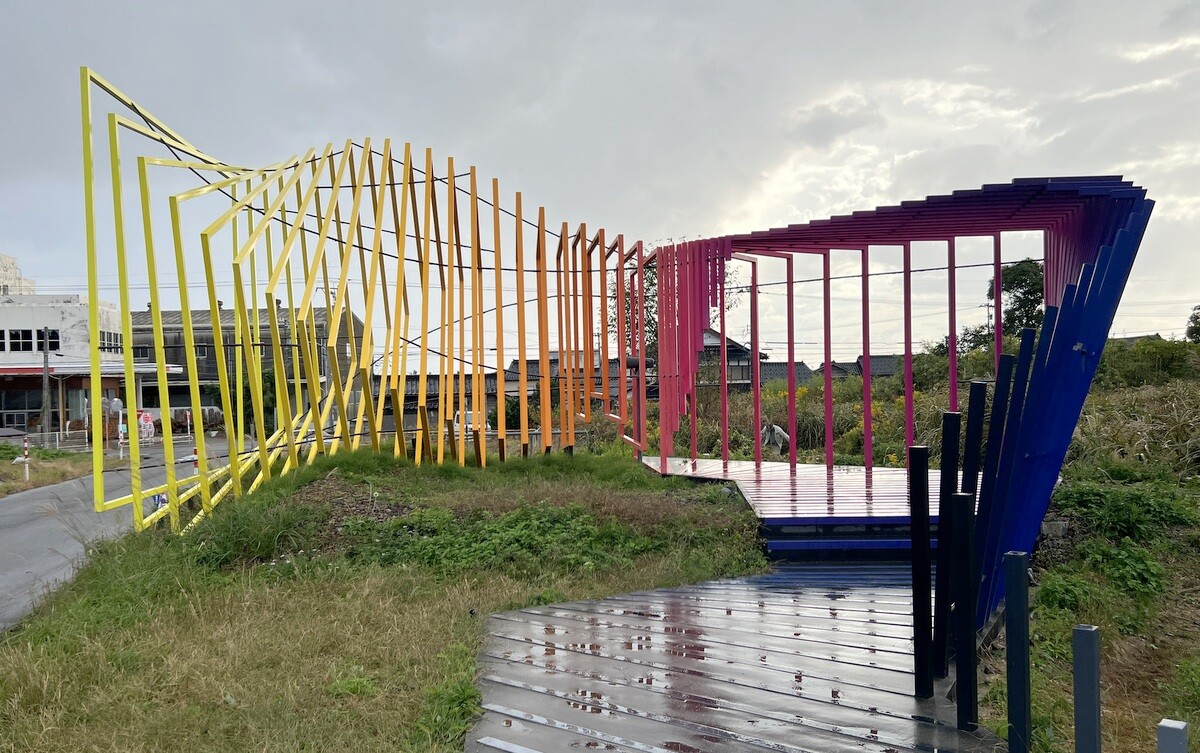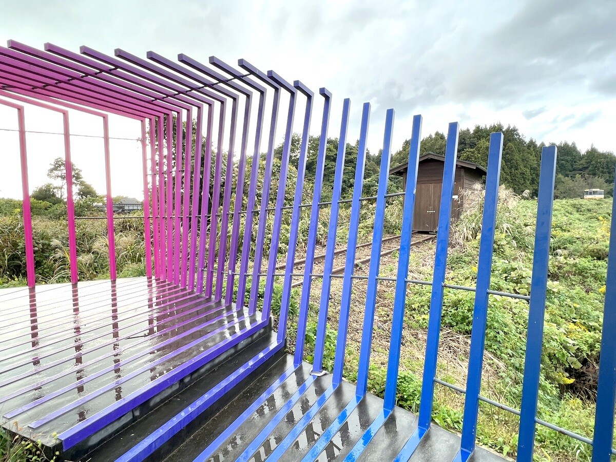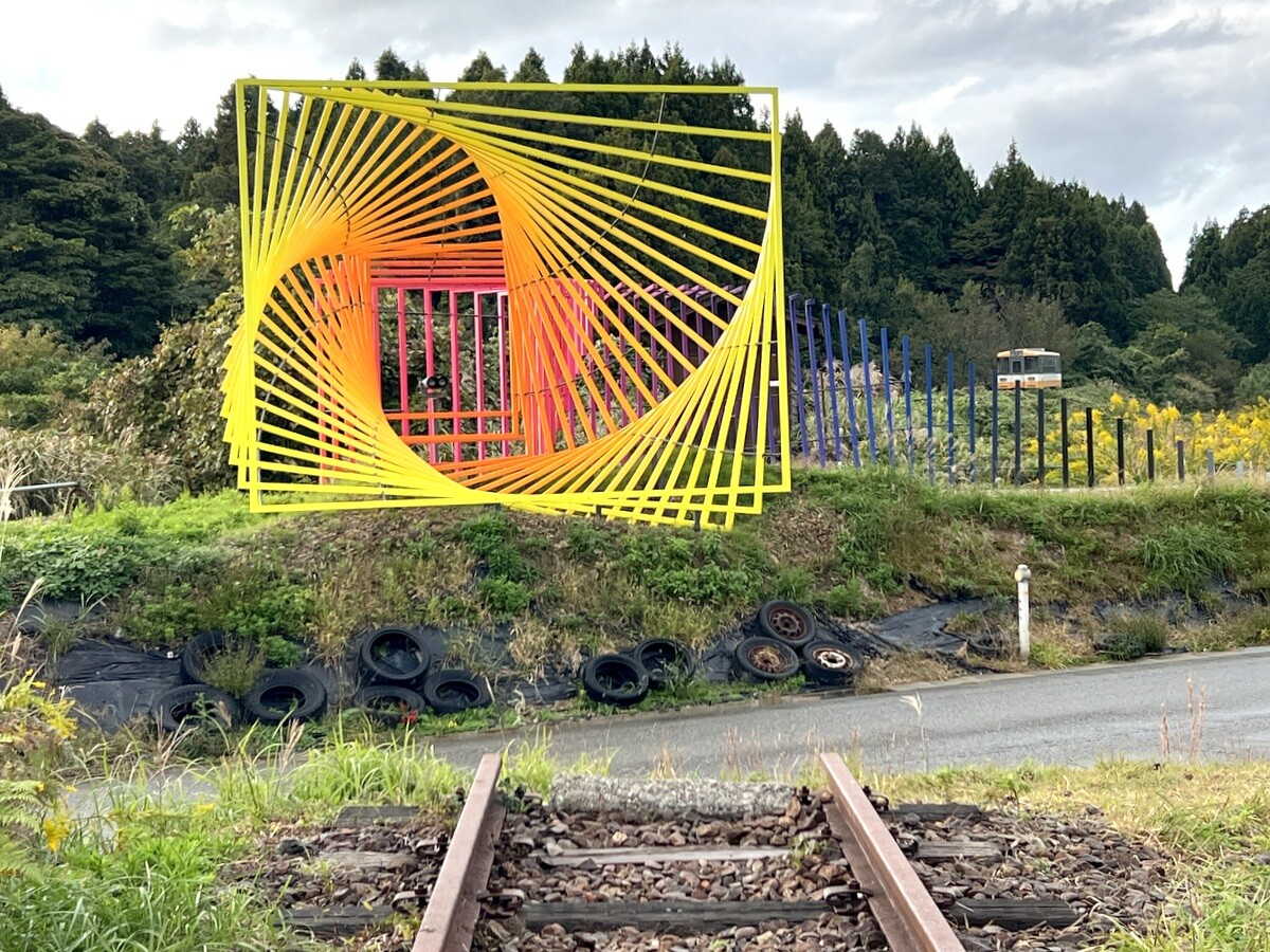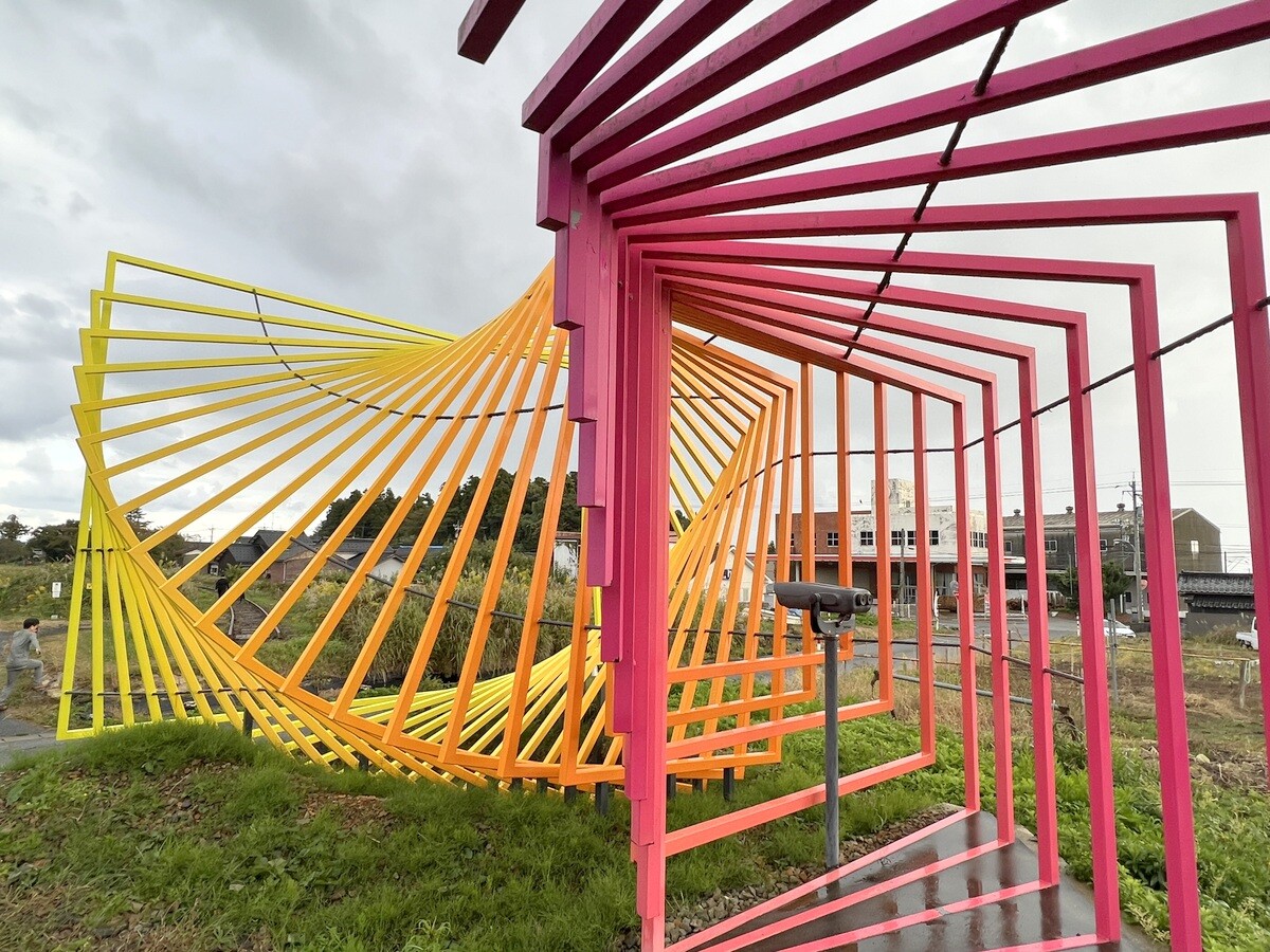 カラフルなオブジェの中には、双眼鏡が置かれており、そこからは執着駅にある「something else is possible」と掲げられた看板を見ることが出来る。