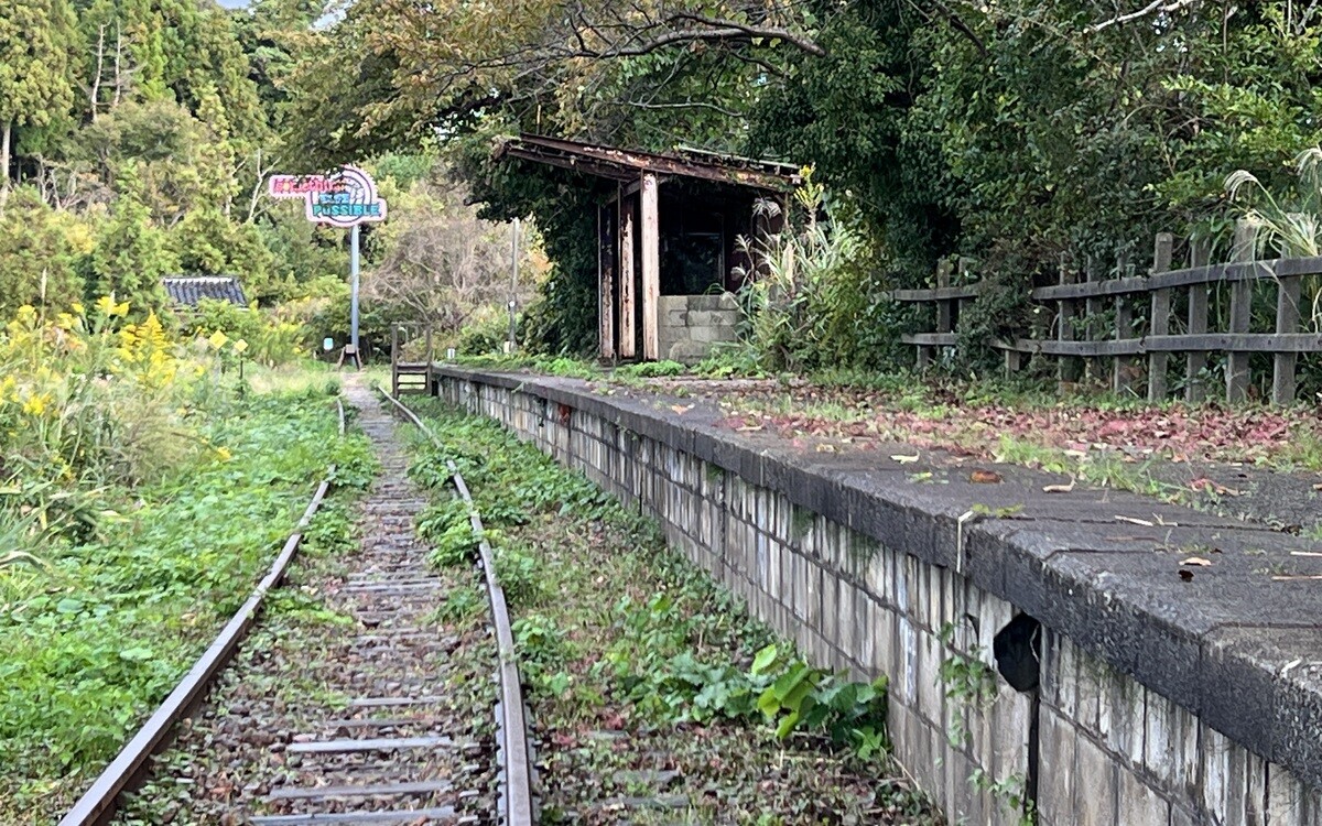国鉄能登線の終着駅だった蛸島駅だが、廃線となった場所で、線路の奥には1両の車両が置かれている。