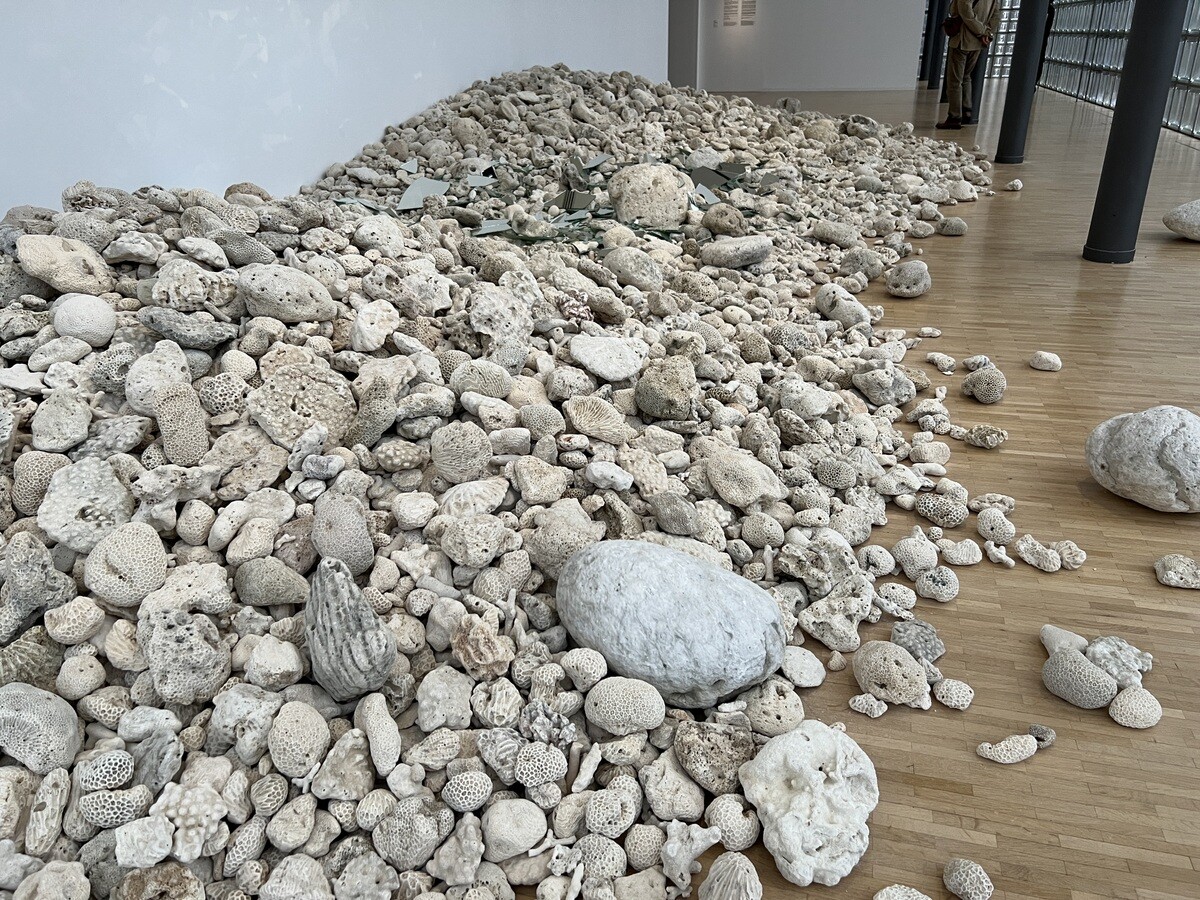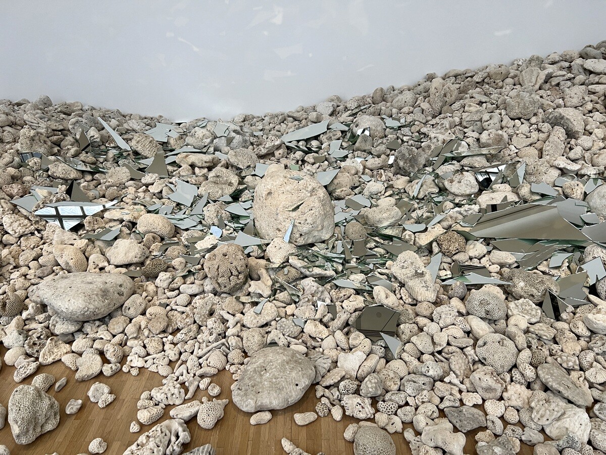 沖縄で浜へ打ち上げられた大量の死珊瑚を目の当たりしたことをきっかけに、白くなった死珊瑚を使っている。沖縄の海では現在90パーセントもの珊瑚礁が白化しており、それは地球温暖化や水質汚染による生態系の破壊によるものとのこと。この死珊瑚は沖縄県の許可を経て借用されたもので、会期終了後は元の海へ変換される予定なのだそう。