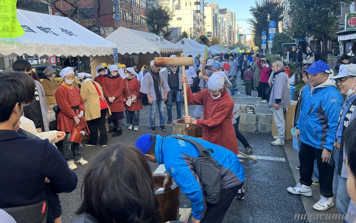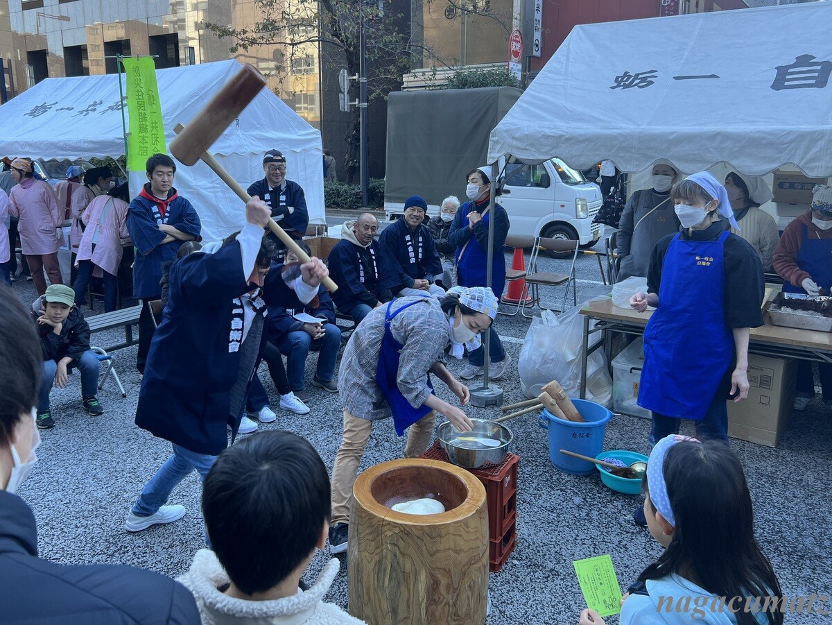 人形町大通りに、15もの町会の方々によるテントが出て、それぞれでお餅つきをされていた。
