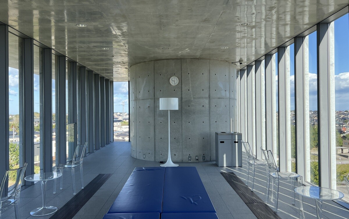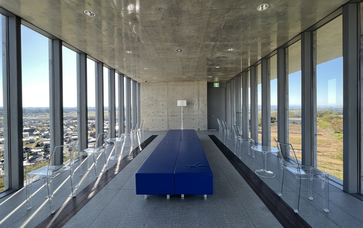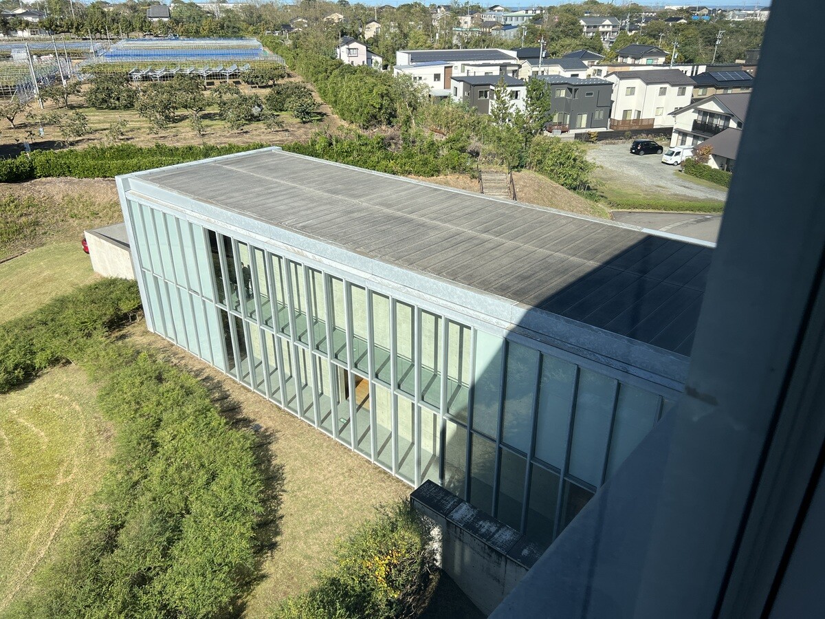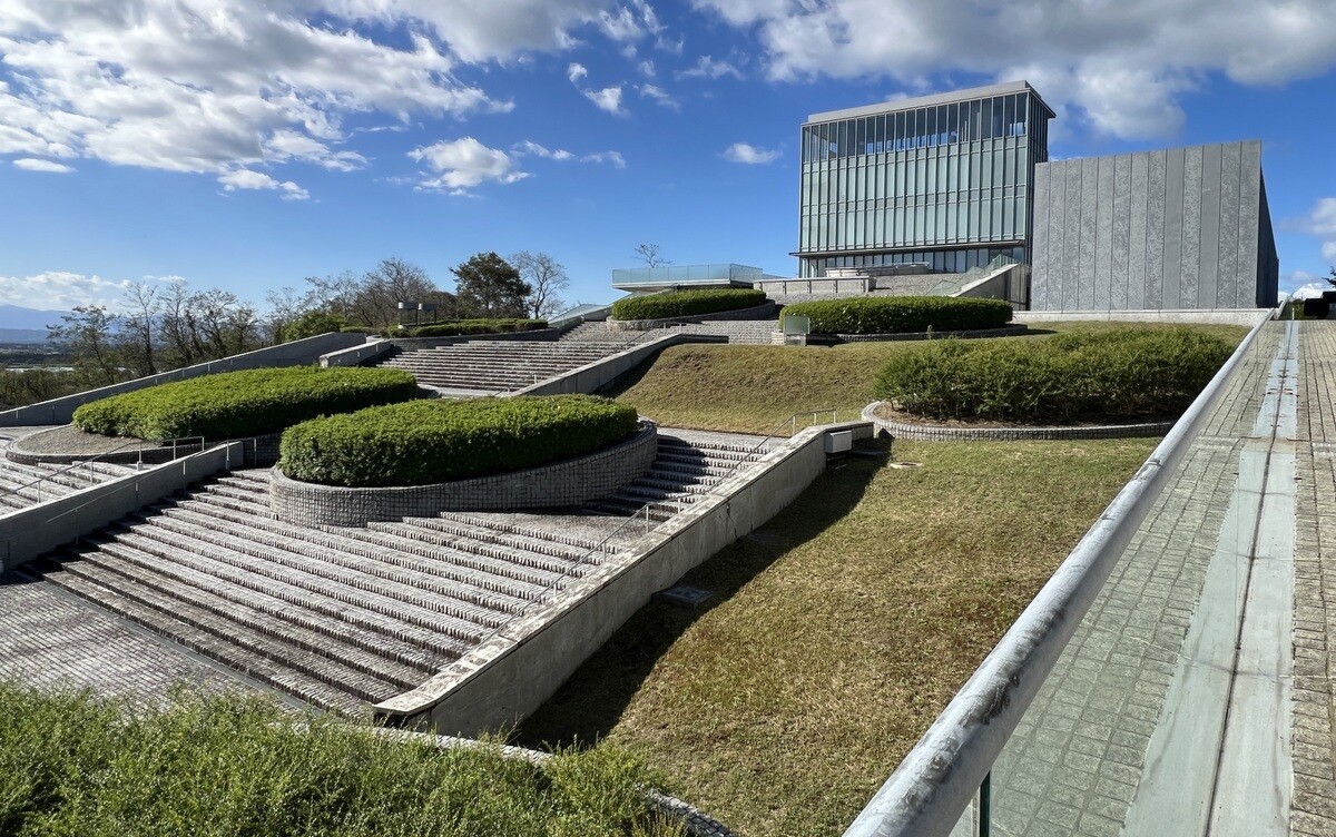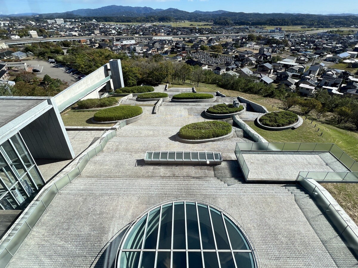 2002年竣工。大規模な改装を行い、2015年に新装開館。日本海に面した内灘砂丘にあり、丘陵地の斜面を利用した広く長い階段庭園と、丘陵上に立つガラス張りの施設となっている。