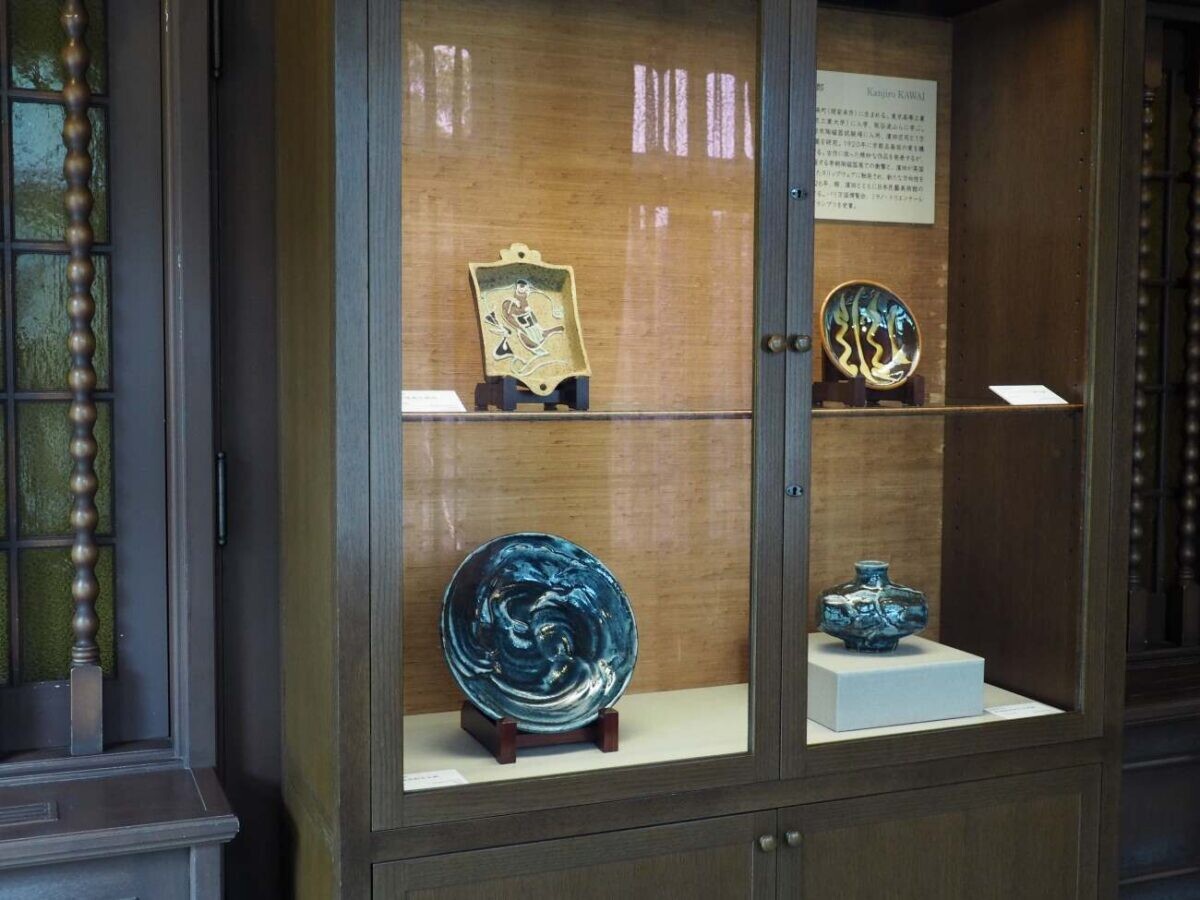各所に、柳宗悦氏、富本憲吉氏、濱田庄司氏、河井寛次郎氏、松木倭帆氏の作品があった。