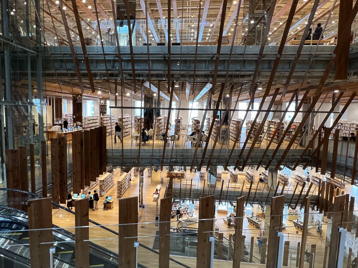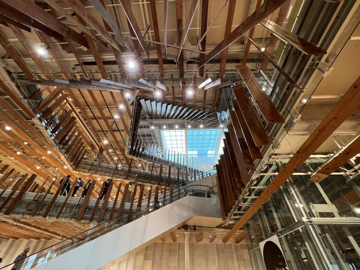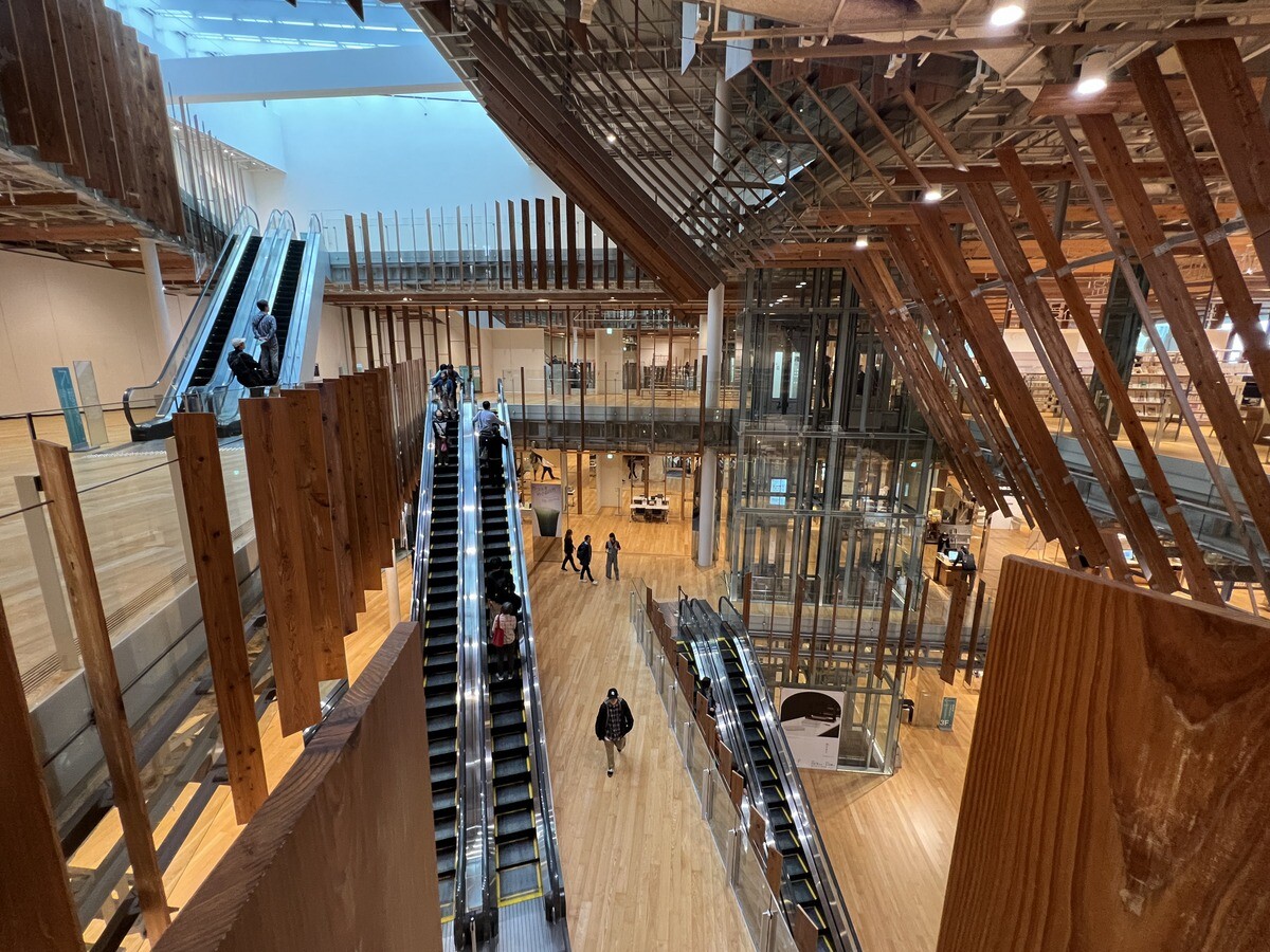 2024年01月30日 建物探訪 隈研吾 @ Toyama キラリ 富山市ガラス美術館、富山市立図書館、富山第一銀行の複合ビル。天井からの自然光が斜めに指してくる中、地元産の杉のムク材の板が配置されている。富山市立図書館も壁や扉で遮られることなく、開放的。3本あるエスカレーターがずれているので、乗るだけで景色がどんどん変わり、楽しい。 にほんブログ村にほんブログ村 「アート鑑賞」カテゴリの最新記事 < 前の記事次の記事 > コメント コメントフォーム 名前 コメント 記事の評価 リセット リセット 顔 星 情報を記憶 コメントを投稿する