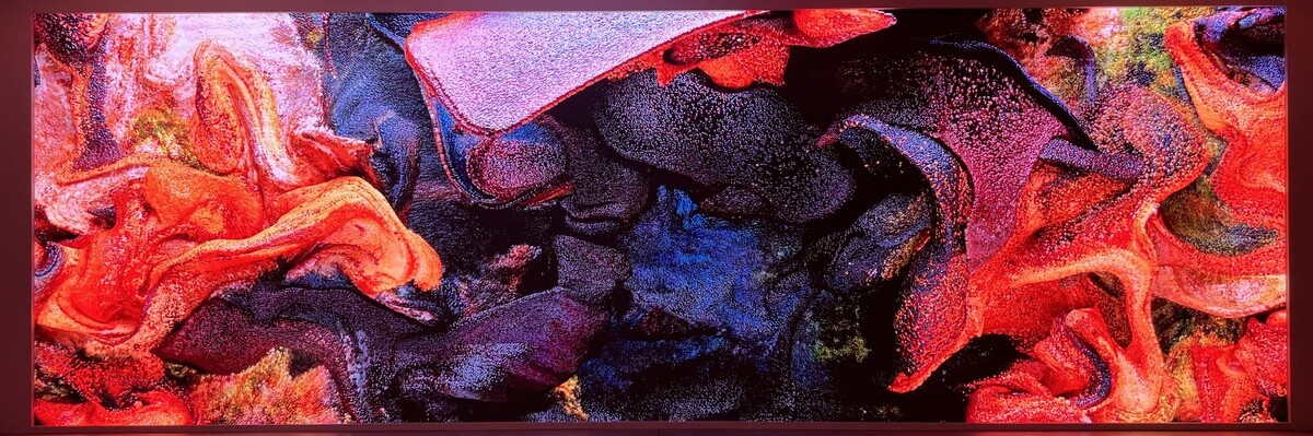 横9m縦3mのLEDスクリーンに、次々と映し出されていく様子は見続けていても飽きない。昨年11月に開催されていたブルガリの「セルペンティ」75周年記念展で発表されていた作品に似ているが、ニューホライズン展の方がずっと長く超大作となっている。