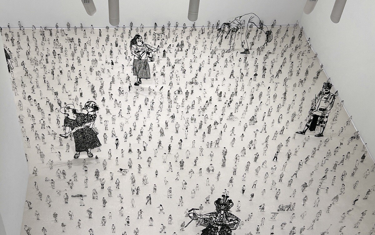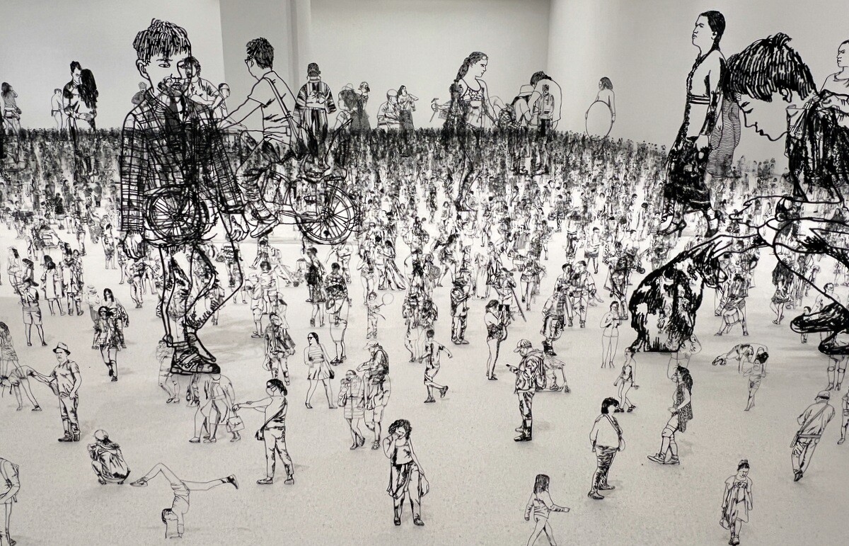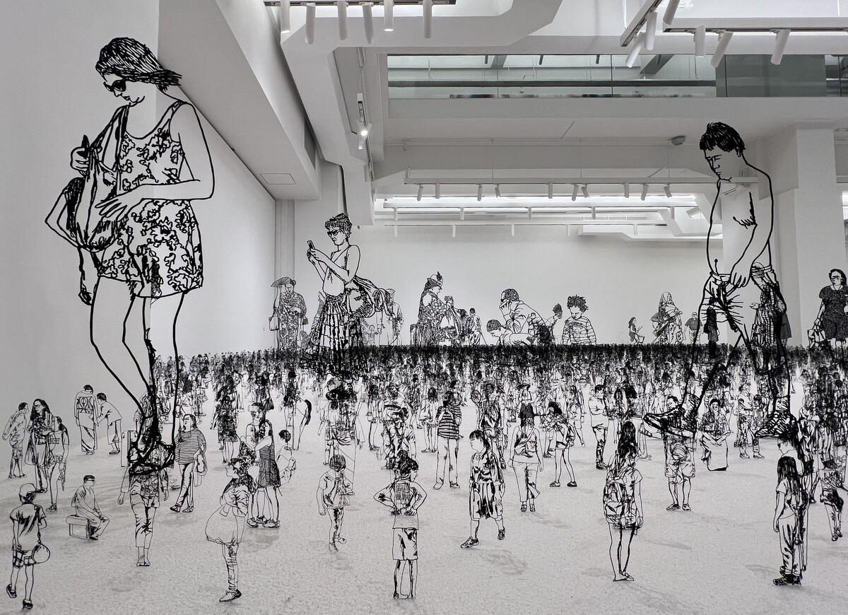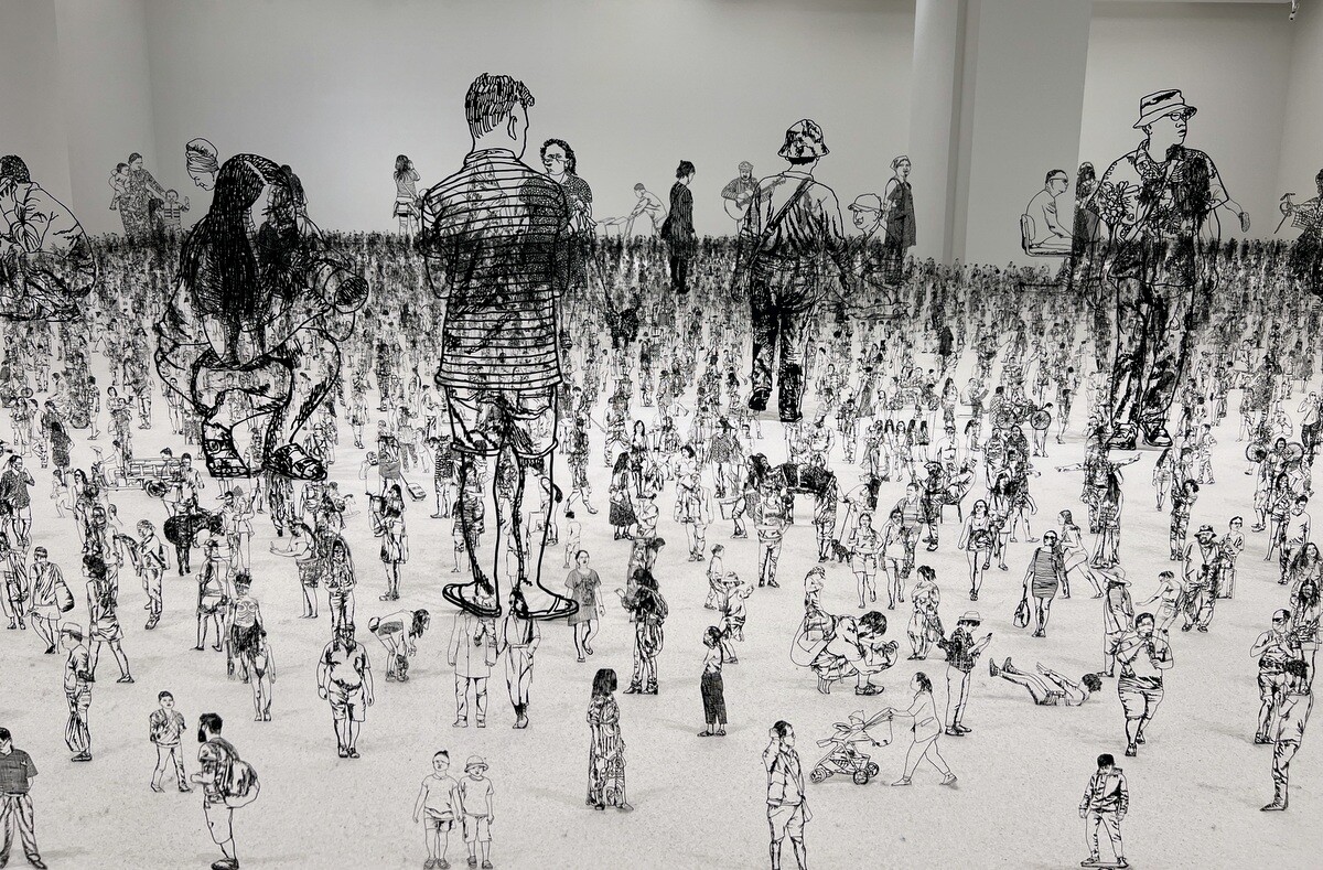 白い砂の上に、金属シートを切った6000個の人間像で構成したインスタレーション。国籍や人種や性別などに関係なく、普通の人々の様子となっている。