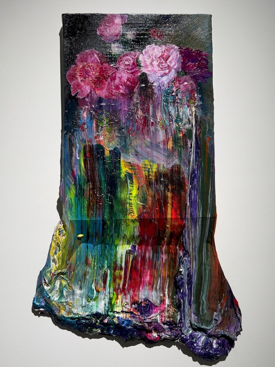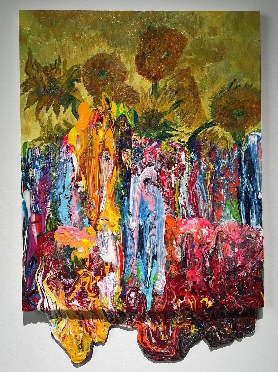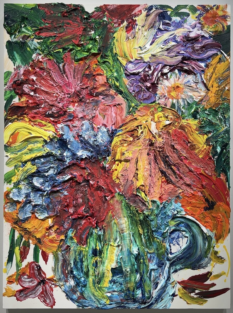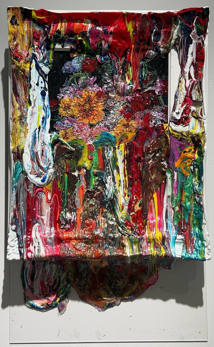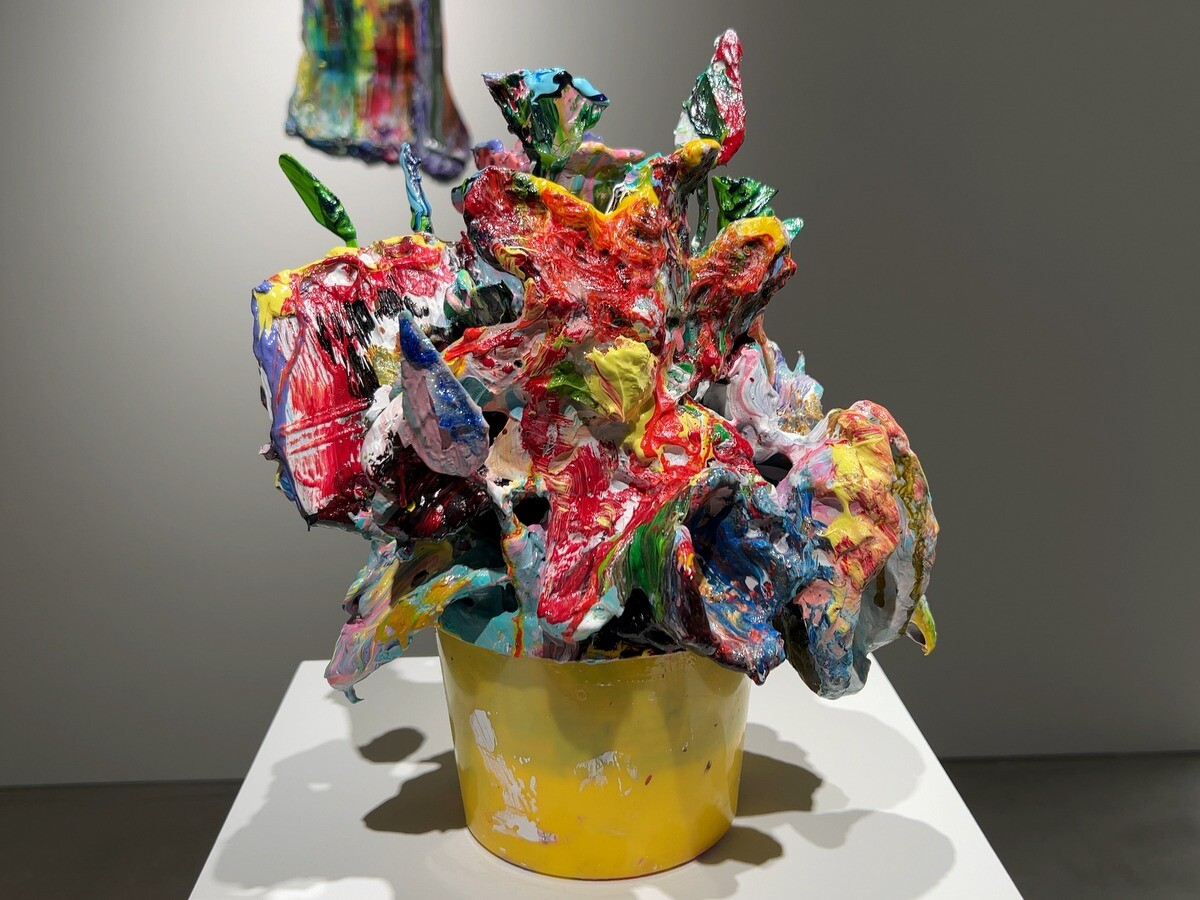 新作の「花・名画・動植物」の3部で構成された作品と、名画を溶解した作品、動物や植物を抽象化した絵具の塊で構成された立体作品まで30数点が並ぶ。