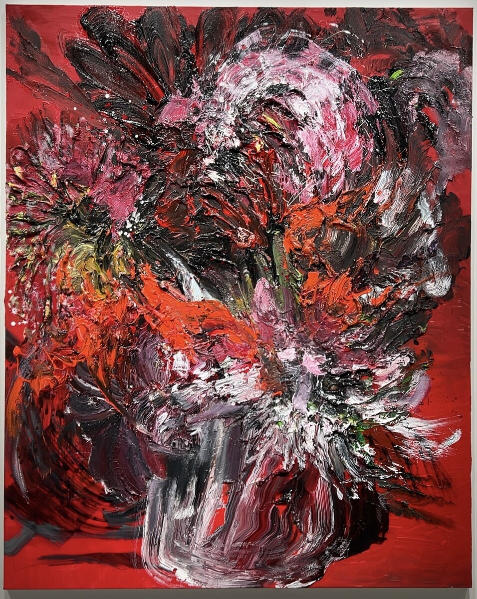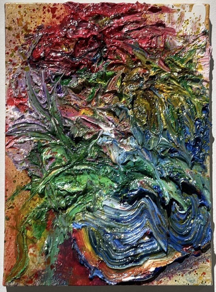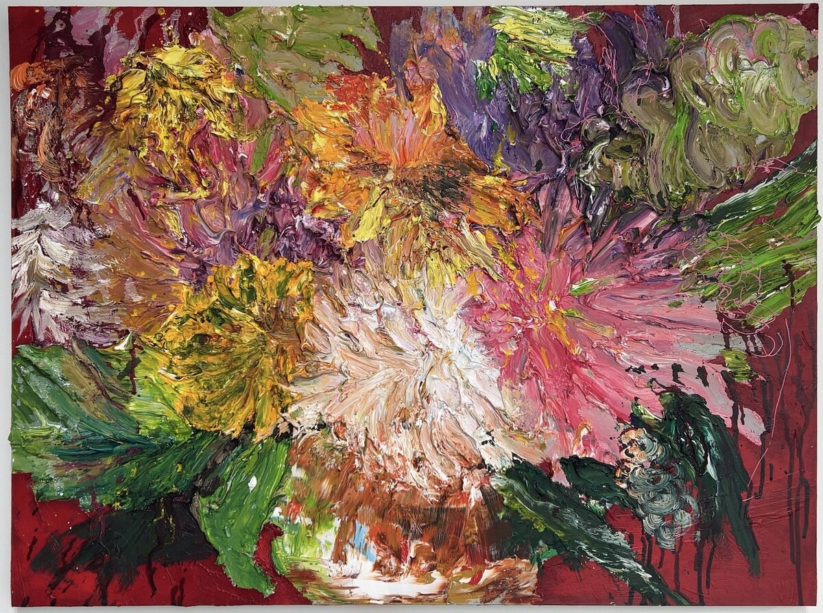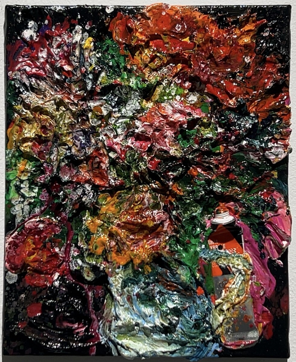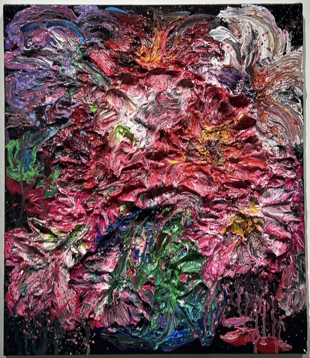 新作の「花・名画・動植物」の3部で構成された作品と、名画を溶解した作品、動物や植物を抽象化した絵具の塊で構成された立体作品まで30数点が並ぶ。