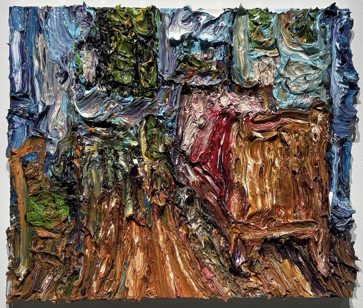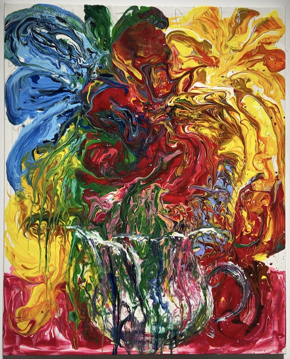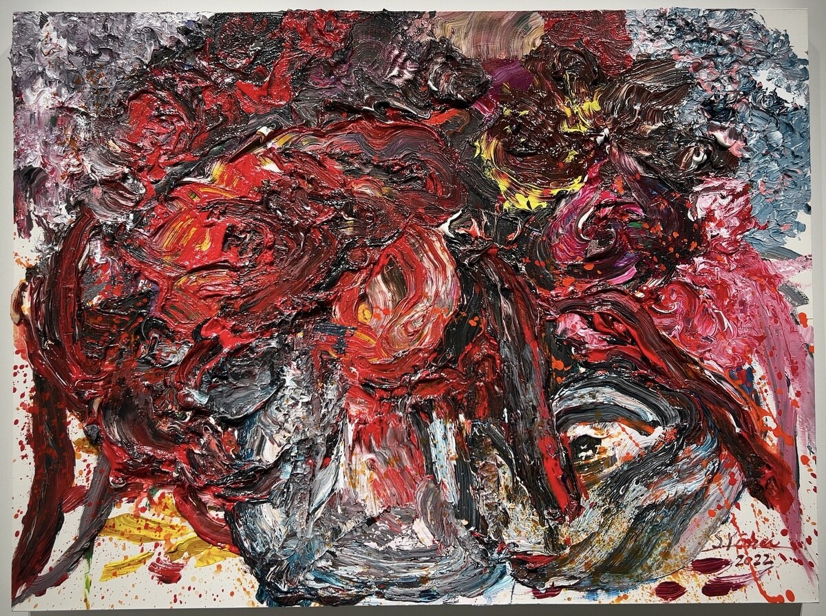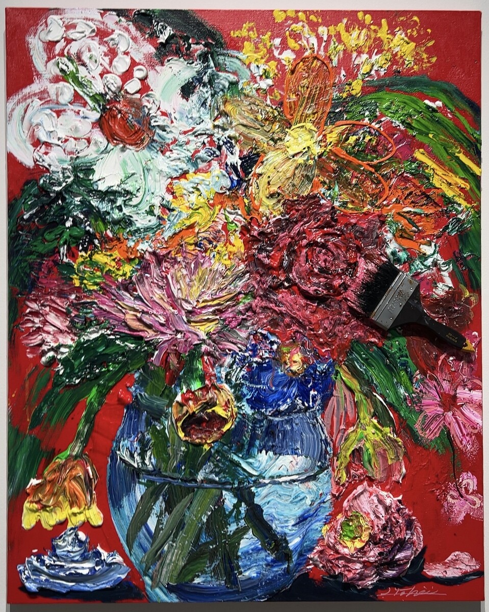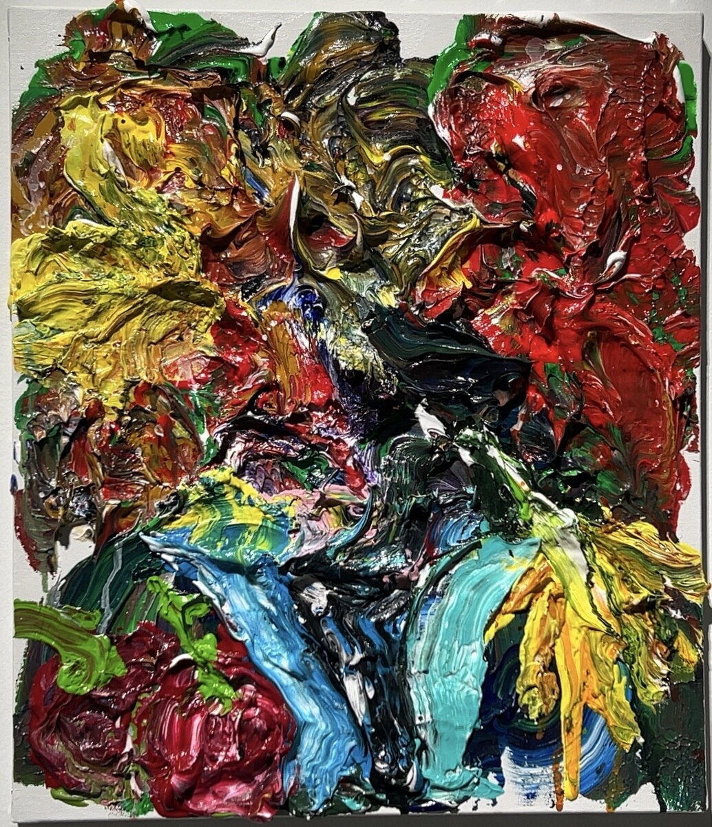 新作の「花・名画・動植物」の3部で構成された作品と、名画を溶解した作品、動物や植物を抽象化した絵具の塊で構成された立体作品まで30数点が並ぶ。