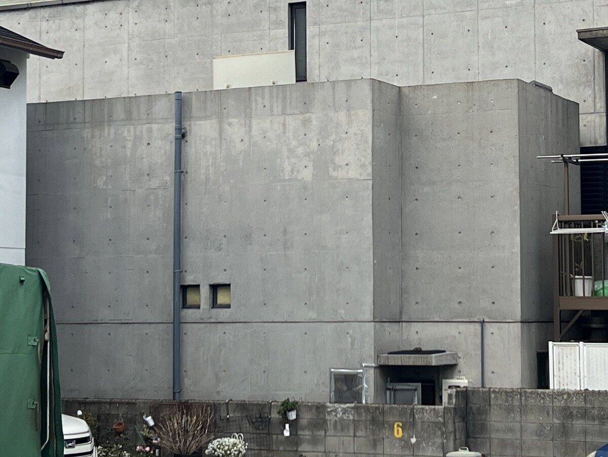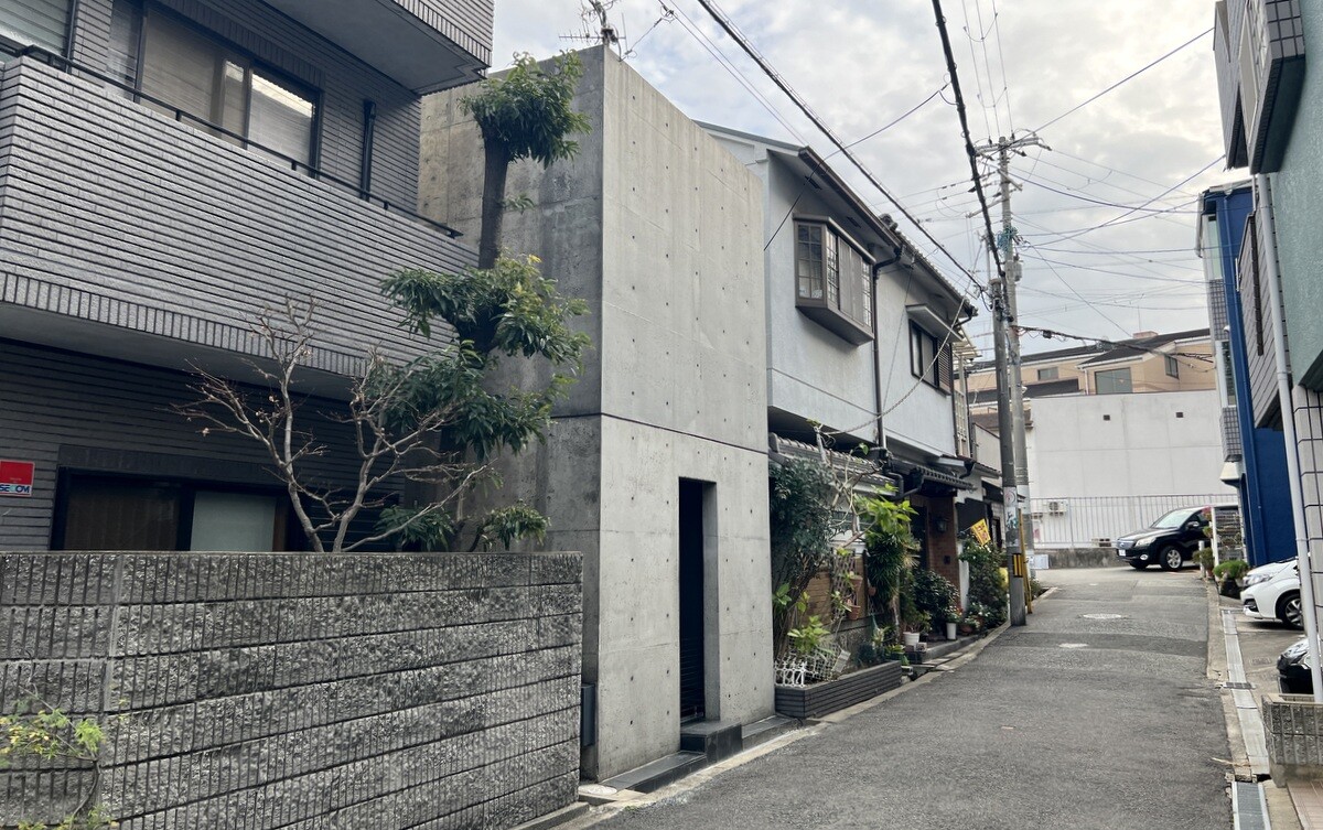 1976年(昭和51年)竣工。狭い路地に面した三軒長屋の真ん中部分、間口2間・奥行き7間で14坪を切り取り、コンクリート住宅に建て替えている。