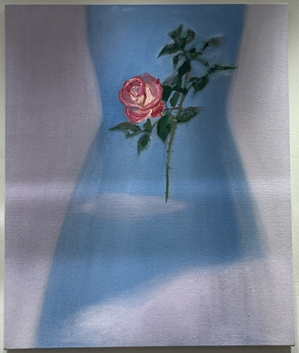具象性と抽象性が共存する作風で、クローゼットや花、果物を描いておられる。