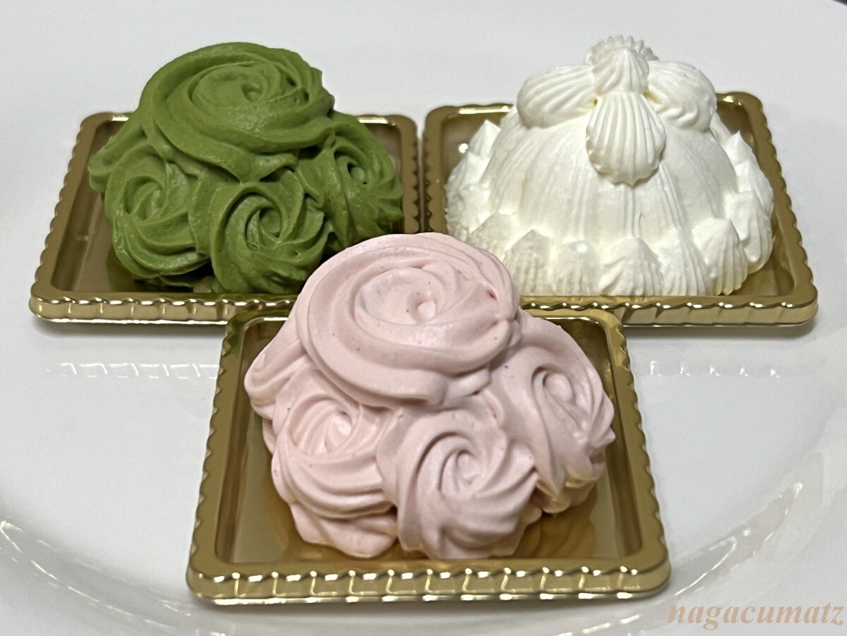 通常は白の生クリームだが、期間限定の桜があったので、ミニマロンシャンテリーセット 桜、白、抹茶の3種 1728円を。桜はあっさりだったが、抹茶は苦みも感じられるほど濃厚。通常の白の定番も、相変わらず美味しい。