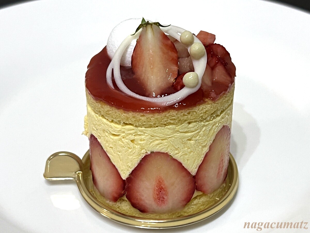 フレジェは色々と食べているが、このフレジェのムースリーヌクリーム(クレーム・パティシエール=カスタードクリームにバターを加えたクリーム)は程良い硬さで、バターの風味がしっかりしていて美味しい。苺は、3個分が入っているとのこと。