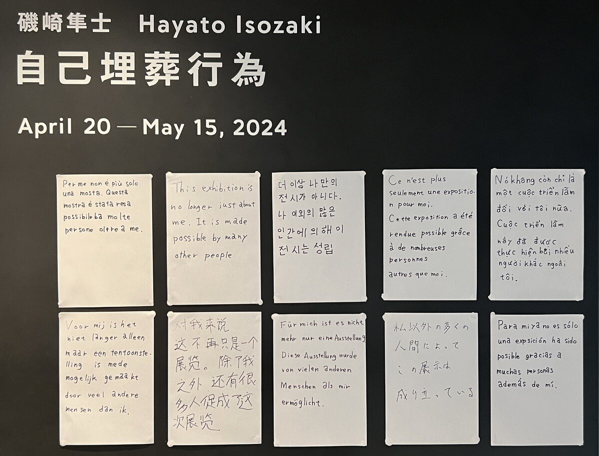 2024年05月04日 磯崎隼士 展 @ FOAM CONTEMPORARY (4月’24) 磯崎隼士氏の 「自己埋葬行為」展。「別れや死を前提として、今を生きること」について考えるというテーマとして制作しておられるとのこと。入口には、10の言語を手描きで書いたものを提示されていた。会場:FOAM CONTEMPORARY会期:4月20日~5月15日’24にほんブログ村にほんブログ村 「アート鑑賞」カテゴリの最新記事 < 前の記事次の記事 > コメント コメントフォーム 名前 コメント 記事の評価 リセット リセット 顔 星 情報を記憶 コメントを投稿する